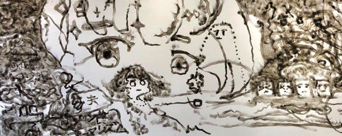 作家にとって令和初の個展となる今回では最新作を発表。燃える炎を用いた非接触の絵画シリーズ「もええ」と、絵画制作において作家の直感を宿す、もっとも汎用性の高い身体部位である指を駆使した作品「フィンガーペイント」などの近作も展示される。