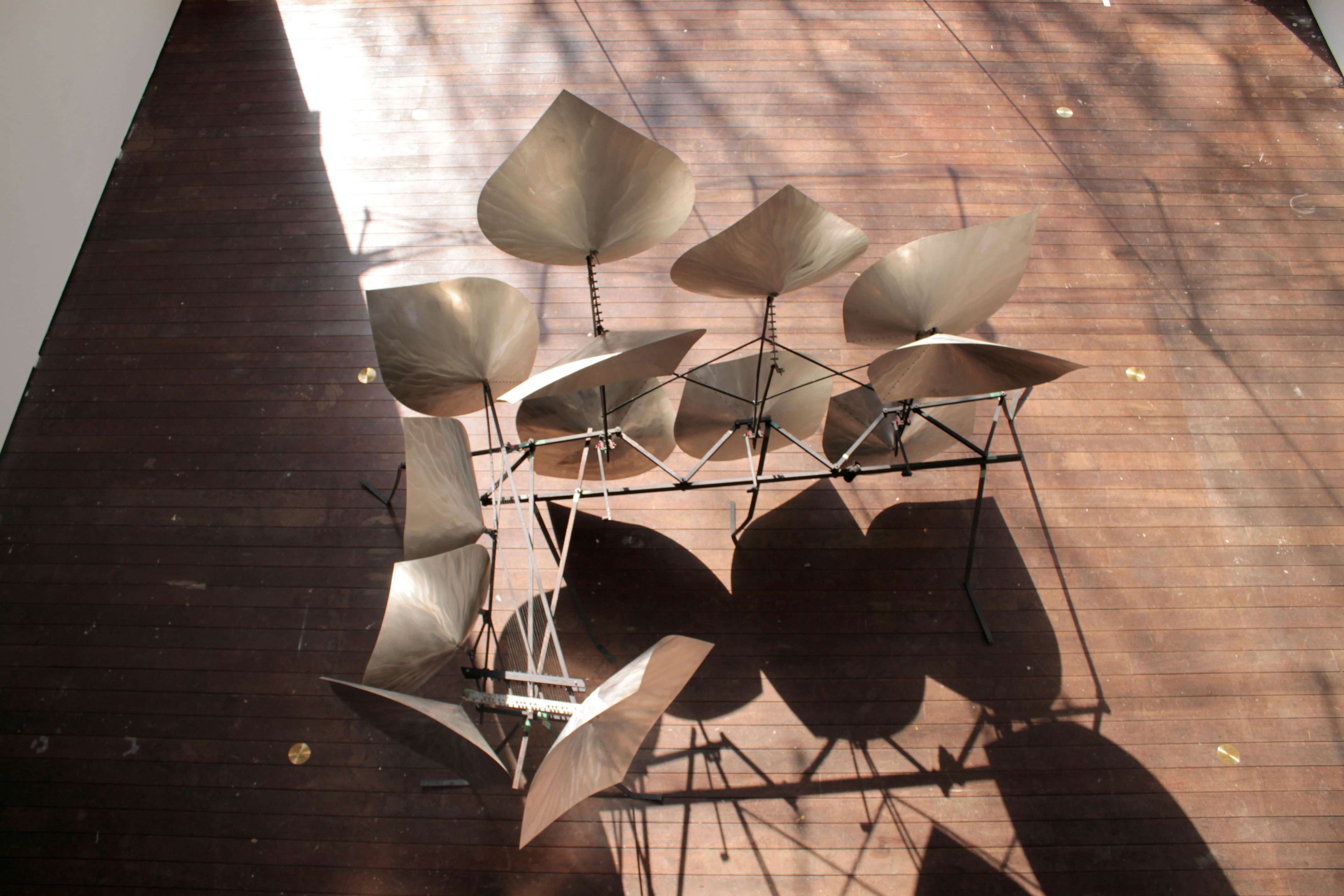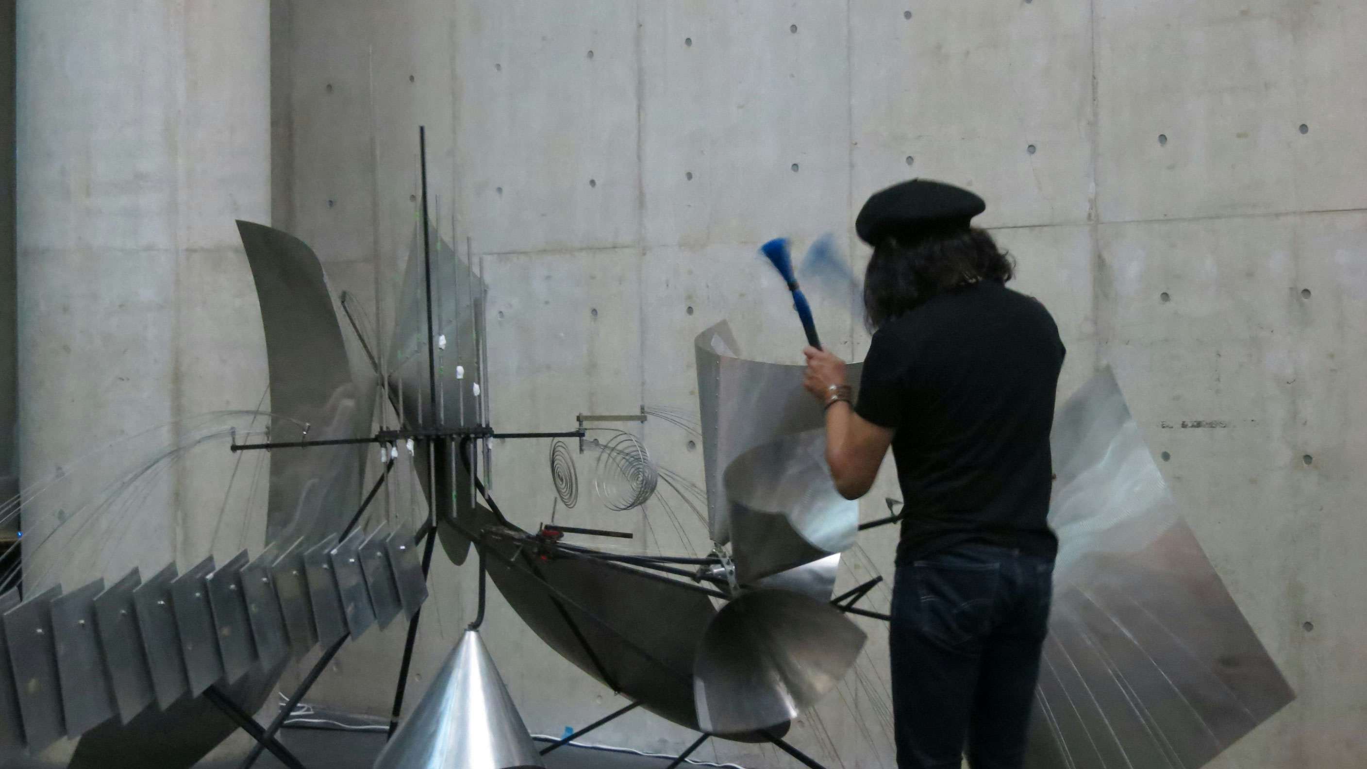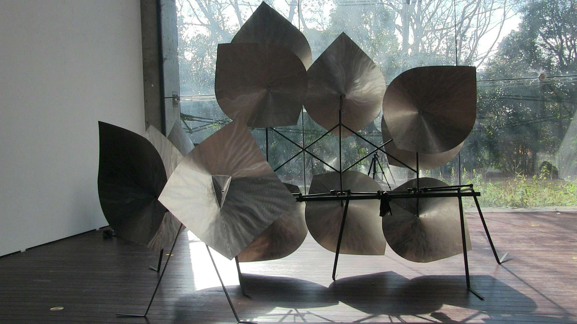 「バシェの音響彫刻」とは、フランスのベルナール・バシェ(1917〜2015)、フランソワ・バシェ(1920〜2014)の兄弟によって考案された音の鳴るオブジェ。1970年の大阪万博において、鉄鋼館のディレクターであった作曲家・武満徹から音響彫刻の製作を依頼されたバシェ兄弟は、来日して17基の音響彫刻を手がけた。