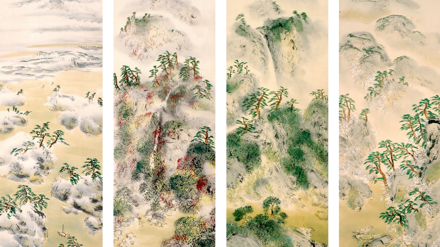さらに本展では、「京洛四季」のように、日本の四季をひと揃えに描く伝統的な主題表現や、春夏秋冬折々の表情をとらえた風景表現にも着目。東山の師・川合玉堂や結城素明、東京美術学校の同窓生である山田申吾や加藤栄三、そして皇居宮殿の装飾をともに手がけた山口蓬春や杉山寧をはじめとする近代・現代の画家の優品も展示する。