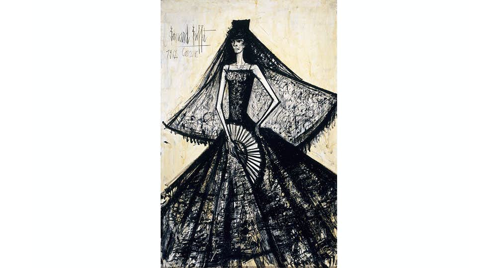ビュフェは1928年パリ生まれ。国立高等美術学校で学び、20歳の時に権威ある批評家賞を受賞して脚光を浴びる。58年にミューズであり、生涯の伴侶となるアナベルと出会い結婚。その後も国内外での個展開催を成功させ、レジオン・ドヌール勲章受章を贈られるなど名誉ある画業を歩んだ。しかし栄光の裏で自らの孤独は癒えることなく、99年に自死する。