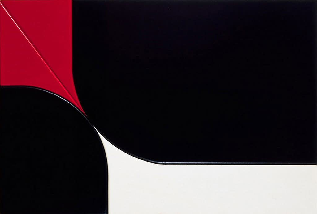 本展では、20代に描いた《椅子の上の魚とラッパと》や、イタリア在住時代の作品《分離する黒のスペース》など同館が収蔵する作品に、80代に制作された《波頭ー立ち上がるー(金)》や《波頭ー這うー(銀)》(個人蔵)の2点を加えた20余点を展示している。