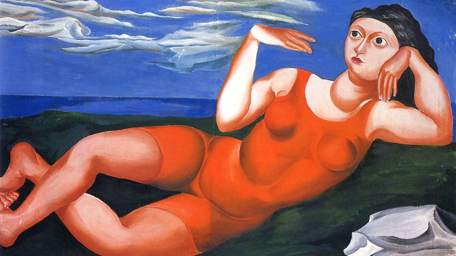 岡本が画家として歩み出した大正期後半は、海外から流入した新しい美術の影響で、様々な前衛美術運動が日本で起こっていた。若き画家はこれらの運動に参加して画風を目まぐるしく変え、ついには既成の芸術を否定するダダイズムに行き着き、絵画の制作を一時放棄。画家としての自己否定に悩んだ末、「絵画の新しい生命力の回復」を目指し、25年に仲間と「造型」を結成して、《海と女》など量感豊かで生命力にあふれた人物像を描く。