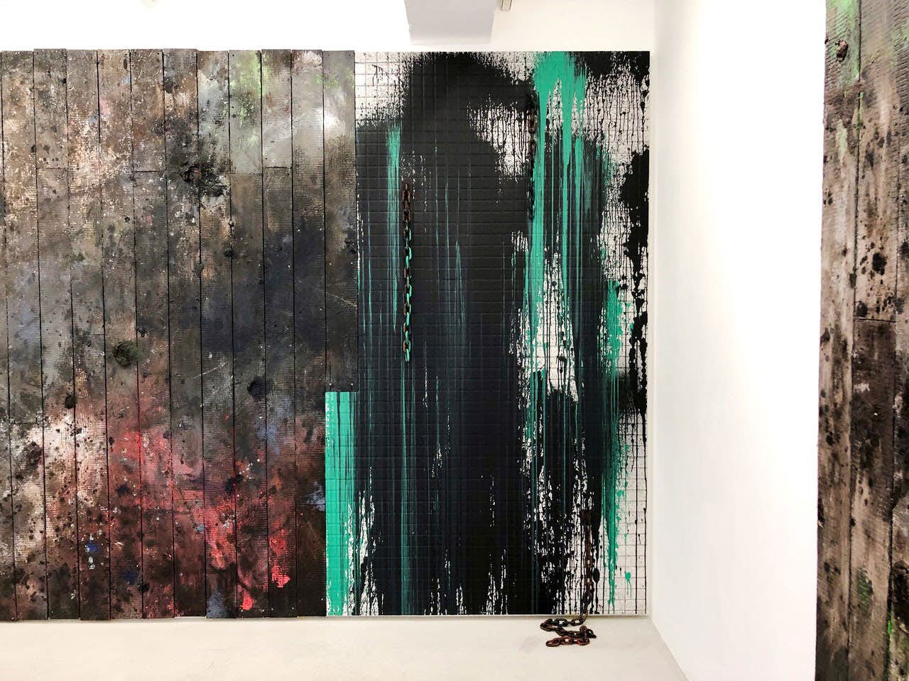 本展では、ギャラリーの正面の壁面を覆う6メートルの大作を中心に、新展開の「trace/dimension」シリーズのペインティングを発表。またギャラリーのバックルームでは、新しい試みとなるドローイングも展示される。