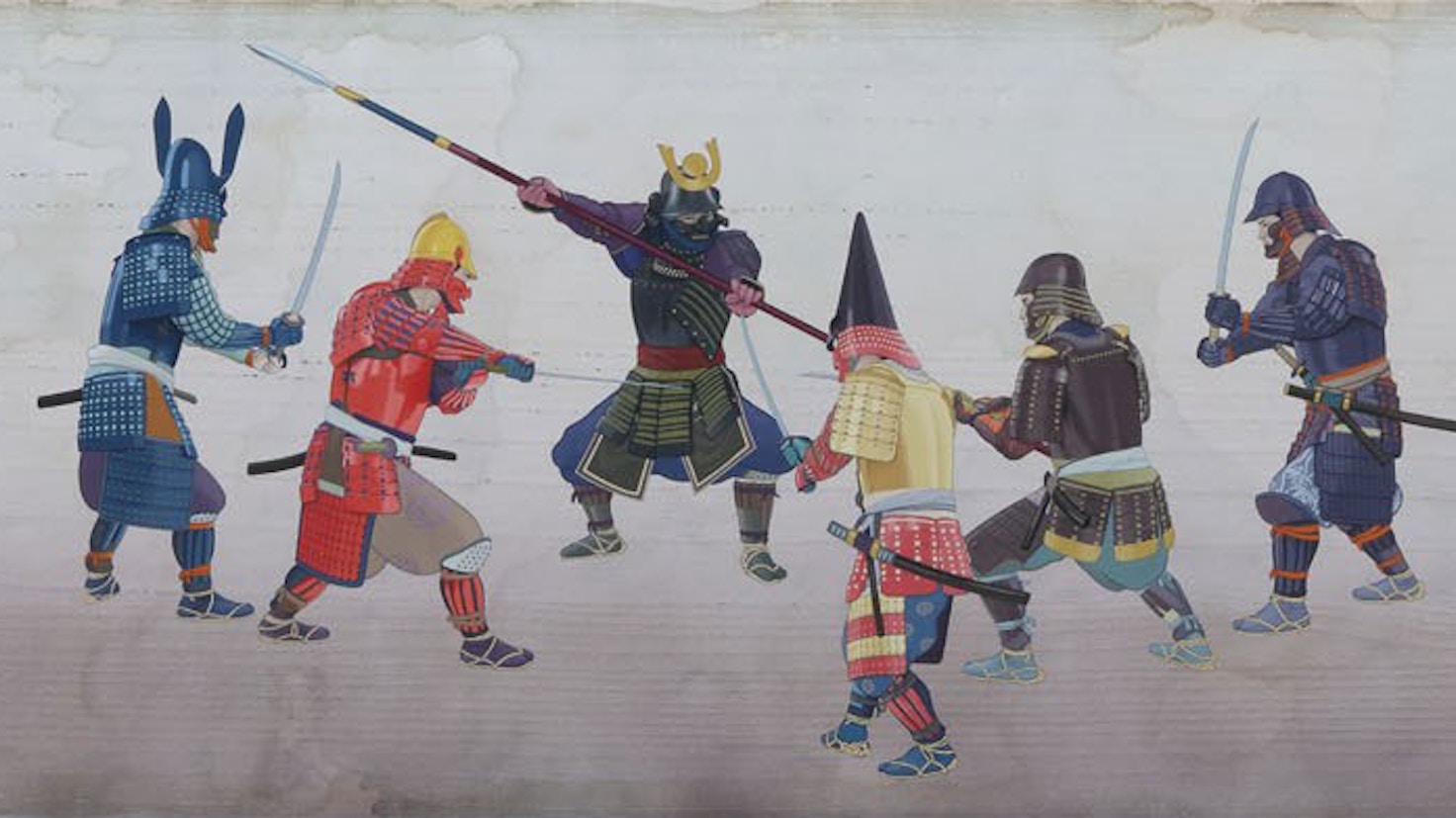 天明屋は1966年東京都生まれ。日本伝統絵画の各流派のスピリットと世界観を、現代に継承・発展させた独自の絵画表現を「ネオ日本画」と宣言。また、華美(過美)で覇格(破格)であり、日本のモダニズムに対するストリートの視線からの下克上と、武人気質の美の系譜を「BASARA」と総称した独自のコンセプトで制作を行う。常識や慣習を打破し、発展的に改変したテーマや、歴史や美術に対する制度に批評的なコンセプトで重層的に描いてきた天明屋は、本展では、武士が絡み合い闘う合戦図を中心に全点新作を発表する。