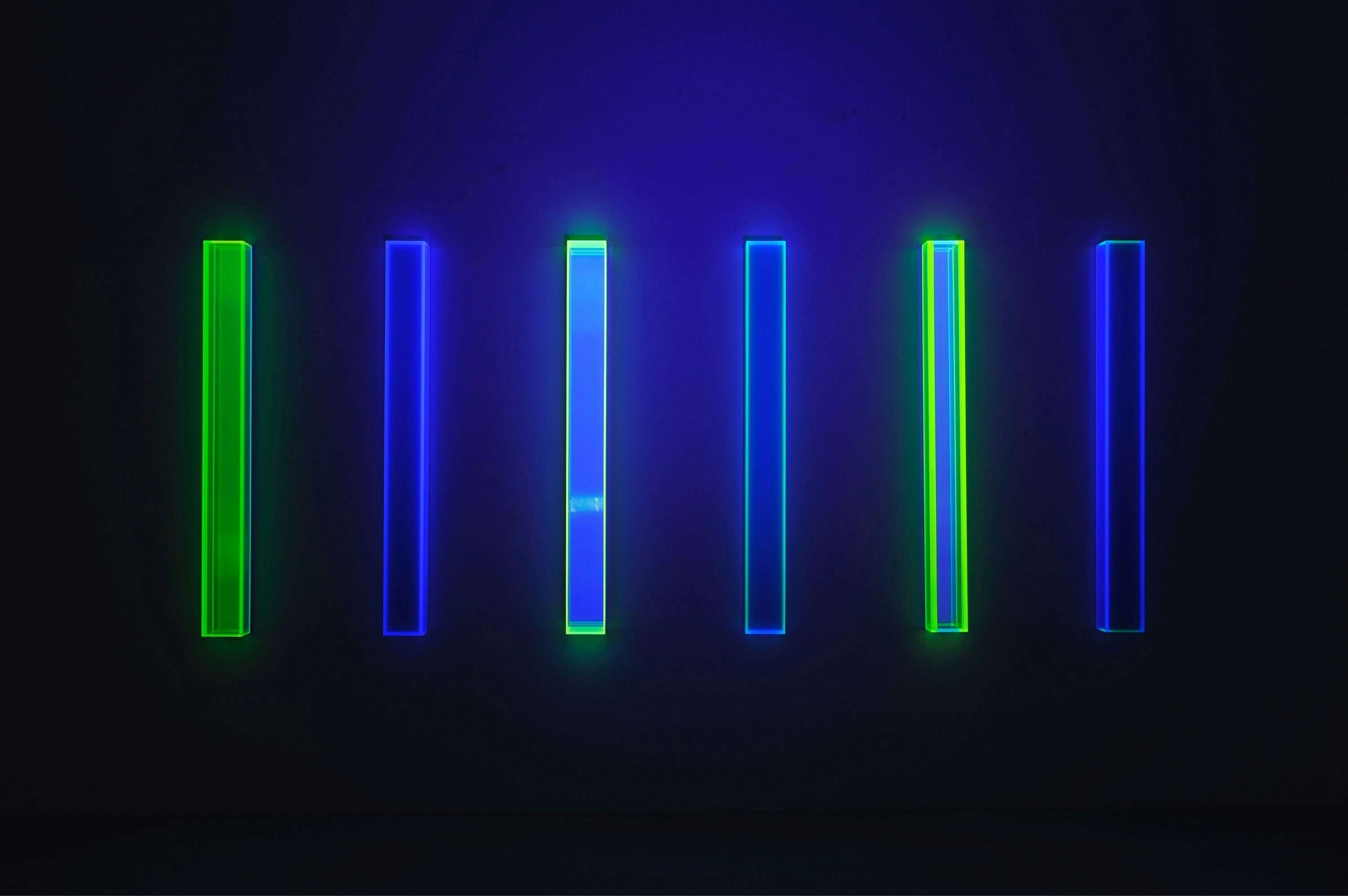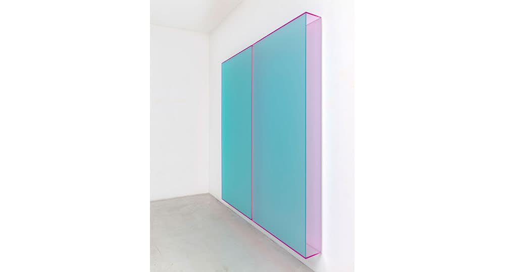 特殊なアクリル板が光の状況に応じて様々に変化するシューマンの作品。人工的・工業的な素材や単純な形態を用いながらも、どこか遊戯的な側面や詩的な叙情性をも併せ持っている。