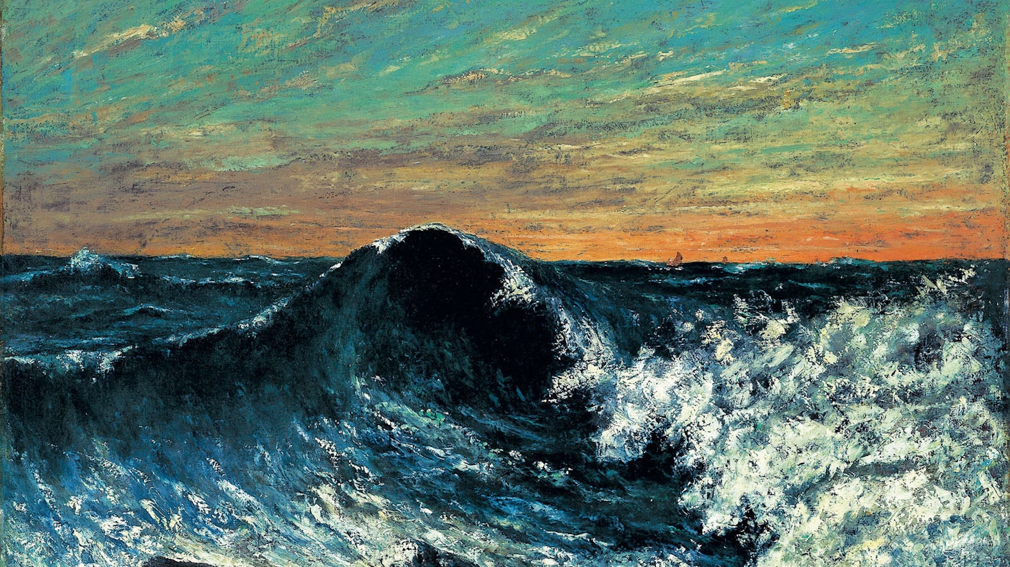 スイス国境近くの山々に囲まれた小さな町オルナンに生まれたクールベが、初めて海を目にしたのは22歳のとき。うねる波、どこまでも続く水平線に圧倒され、とくに1860年代以降に好んでその情景を描き、当時の人々から賛辞を得た。クールベは波のみに肉薄し、それまでの時代に描かれた物語性や感傷性に富む海とも、後の世代が描いた海水浴客のいる身近な海とも、異なる視点で海をとらえた。