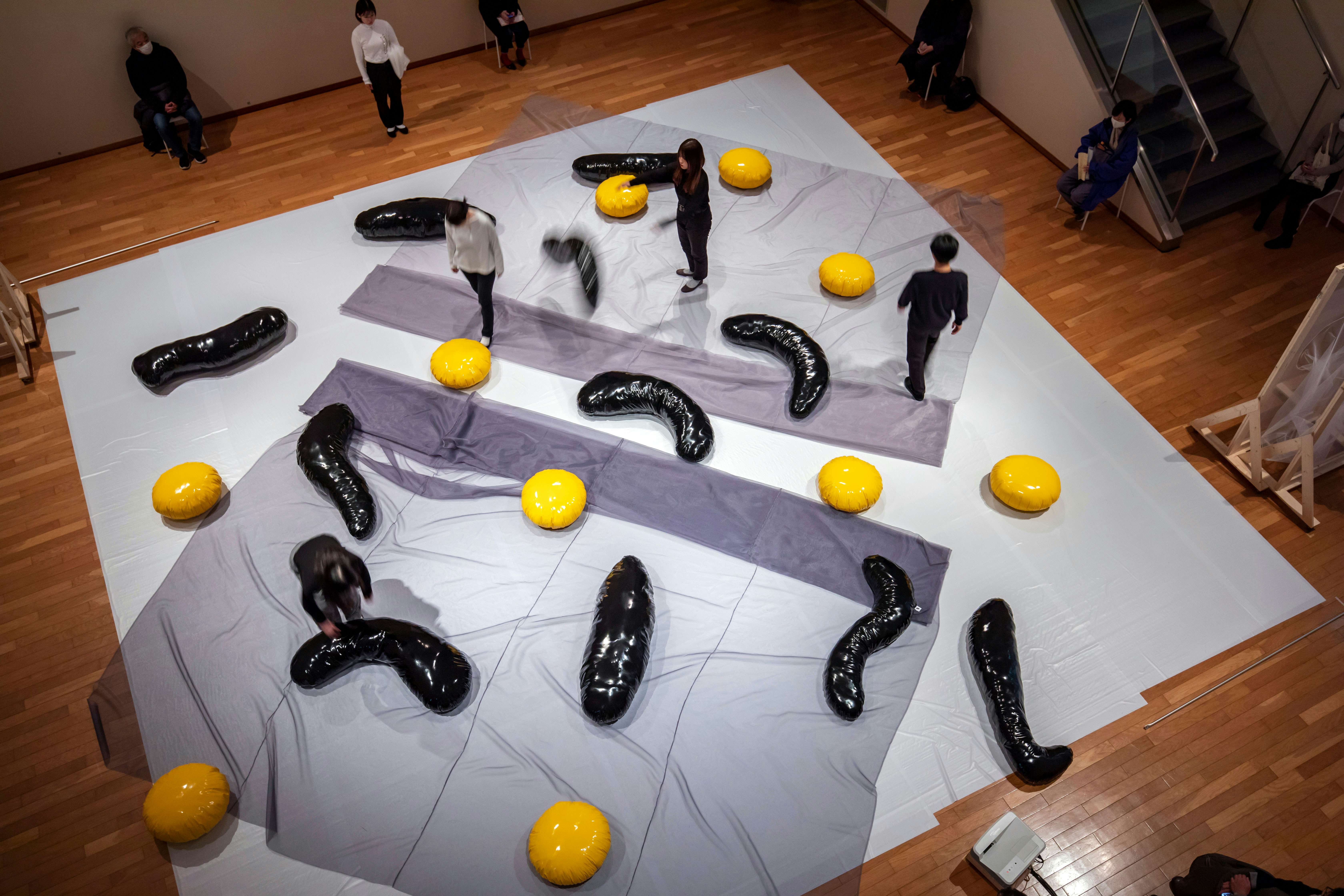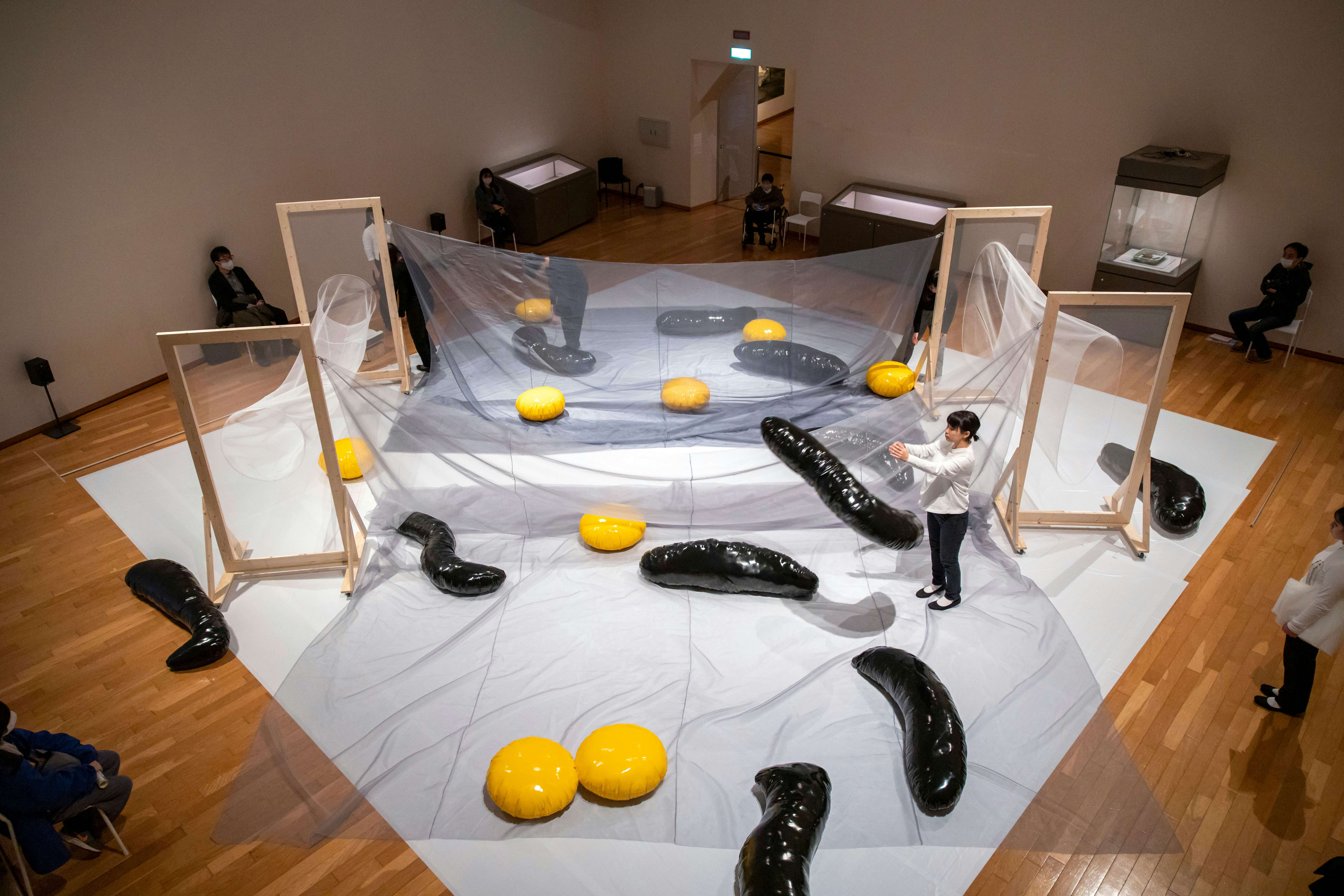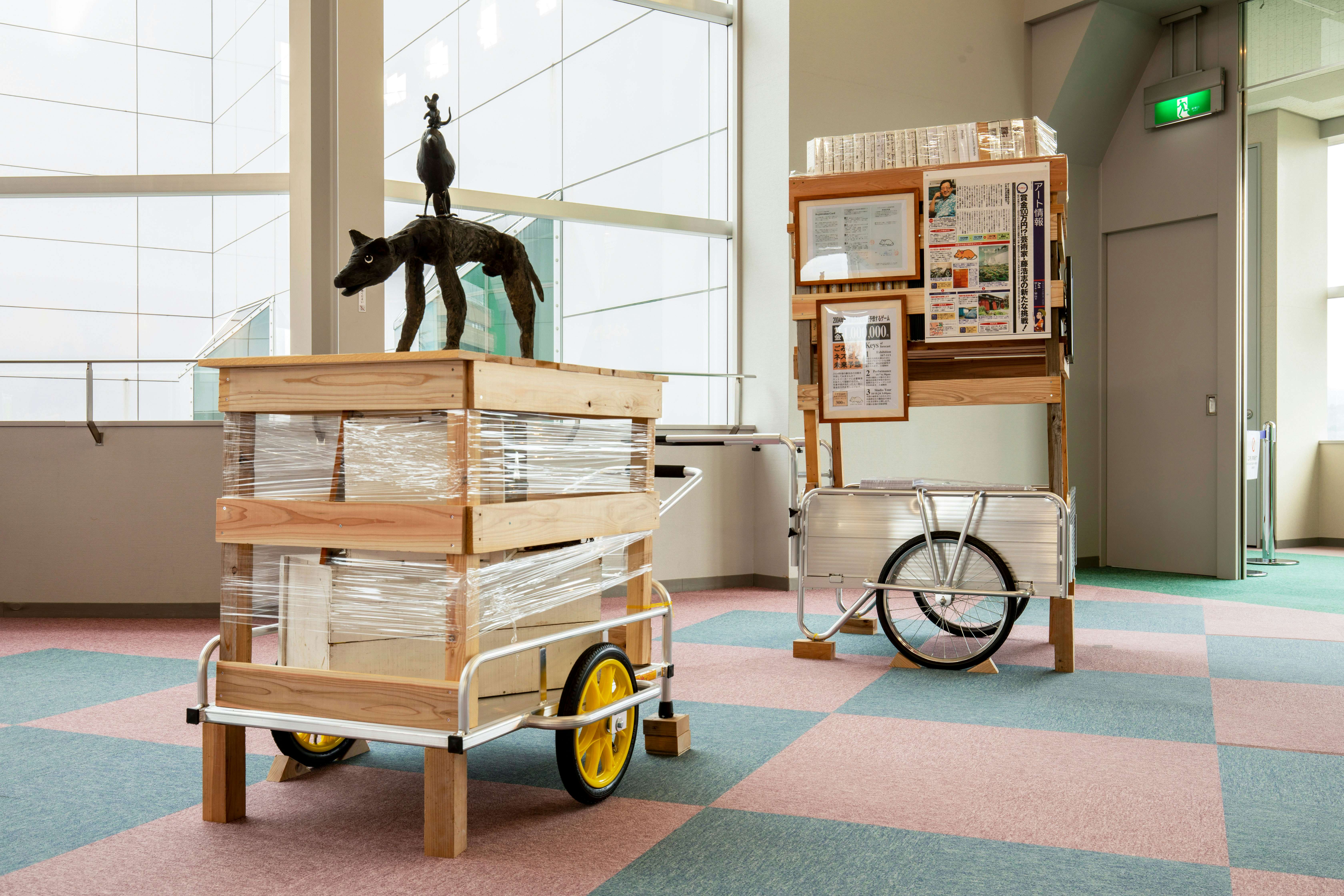 屠畜や貿易、婚姻などの社会システムをモチーフとした作品を制作する迎は、人やものが国境などの境界を超えて移動する仕組みを調査し、それらを視覚化した空間でパフォーマンスを展開。藤は、自身の創造の根源でもある長年の収集や制作活動を、圧倒的他者の視点に立って観察することを試みた作品《Chuta Report 【チュウタの観察帖】》を発表する。