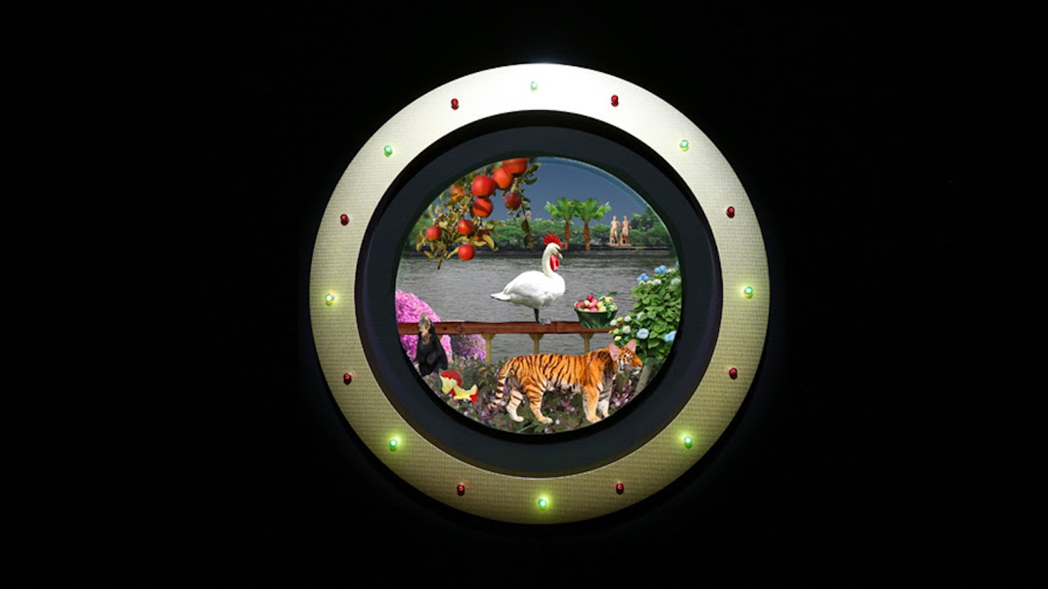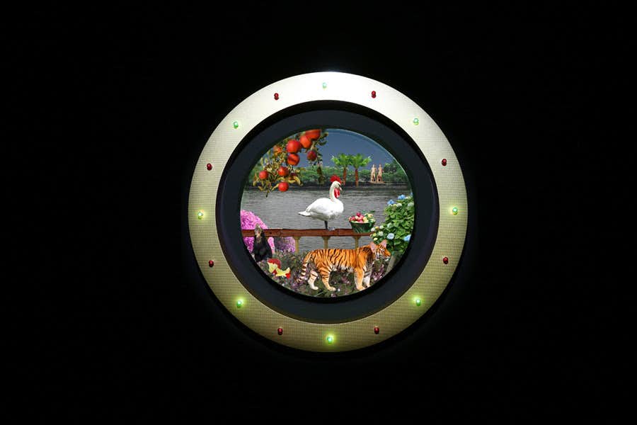 本展では、笹岡が愛犬の「死」をきっかけに読みはじめた「聖書」を独自に解釈し、視覚化したビデオ・インスタレーションを展示。他国と比較して宗教観の希薄な日本人の笹岡が、世界の人たちと繋がっているように感じたことから生まれた独自言語、「ホロル語」を使った会場構成により、現実と非現実が渾然となった劇場空間が広がる。
