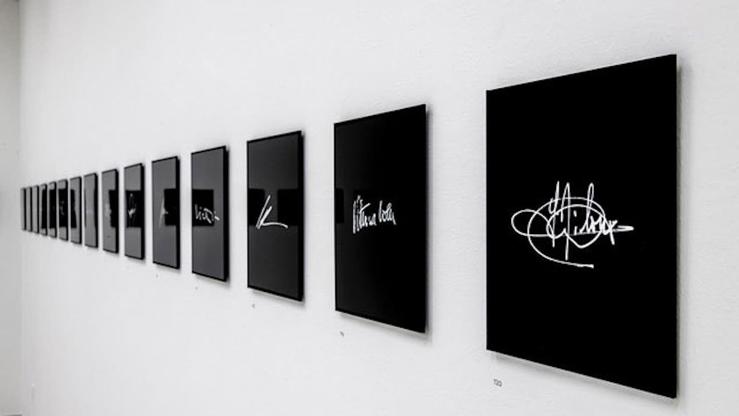 本展では、キャリアを始めたばかりの若いキュレーターから、国際的に活躍する有名なキュレーターまで、「キュレーターのサイン」を集め、ひとつの作品として展示。デジタルの世界によって大きな変化にさらされているいま、美しさをもつ作品として「サイン」を熟考することで、自己と個々のアイデンティティの問題について問いかける。