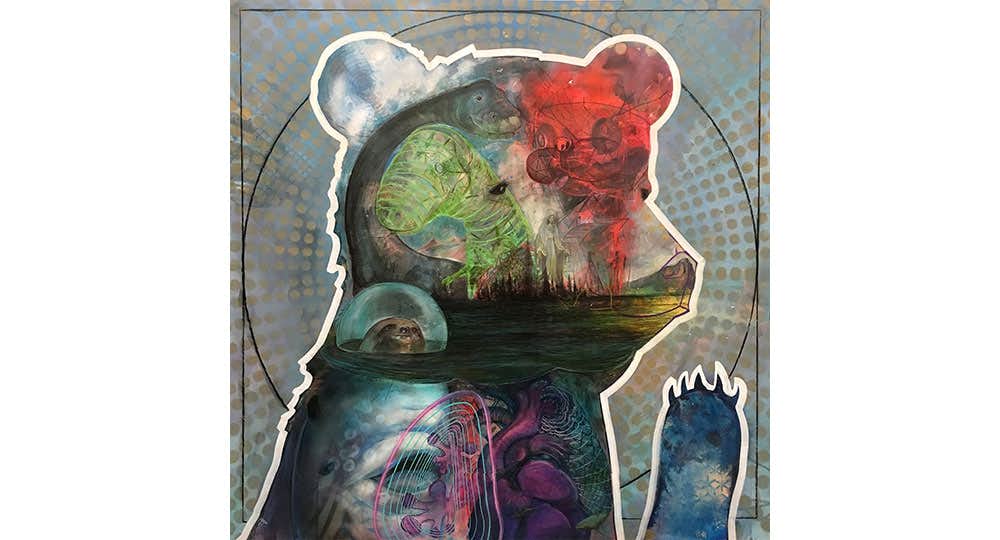 シフ・ストロイの作品は伝統的な方法とデジタル手法を用いて、一見神秘的な視覚的語彙を、作家の故郷であるノルウェー北部の海岸を彷彿とさせる民話のような物語に織り込む。いっぽう、コロラドを拠点とするミクストメディアアーティストのジェフ・スティーブンスは、それとはやや反対のアプローチとして、コラージュ、ステンシル、絵画の技法を独自に組み合わせ、現代の洗練された広告的イメージを分解する。
