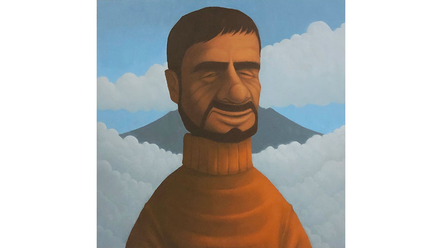 「JOURNEY」の制作中、思うように描けず大きな壁にぶつかったというSablo。そこに友人からバスツアーの誘いがあり、ともに富士山を拝んだ。「JOURNEY」ポートレイトのうち、オレンジのセーターを着た男の背景に富士山を配置した。Sabloはこうしては旅で目にしてきた景色を追体験するように、あるいは記録するように作品を描いている。