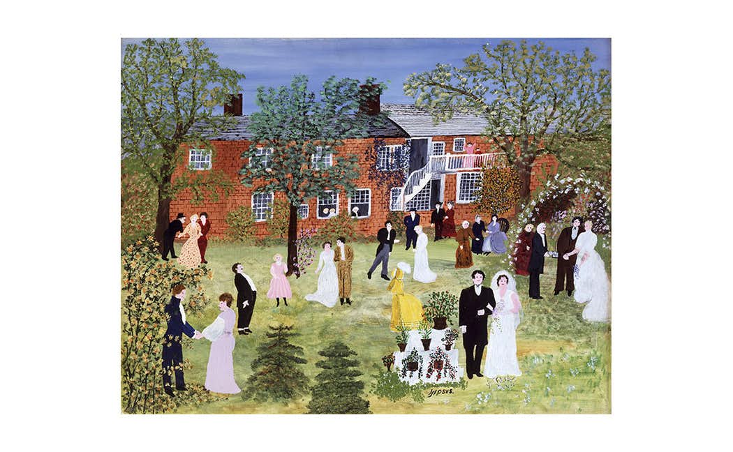 その作品を偶然、村を訪れたコレクターが目にし、80歳の時にニューヨークで初個展を開催。身近な出来事や自然への温かなまなざしを感じさせる作風とそのユニークなキャリアで注目され、当時、大恐慌や第2次世界大戦を経験し疲弊していたアメリカの人々の心を癒し、一躍人気作家のひとりとなった。大統領から表彰を受けるなど著名になってからも、モーゼスは変わらず自然や素朴な暮らしを愛し、誠実に生きながら、100歳まで絵を描き続けた。