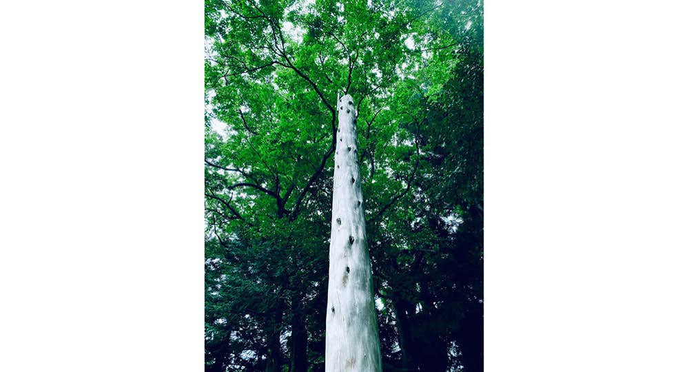 諏訪大社は諏訪湖のほとりに社を構える、国内最古の神社のひとつ。社殿の四隅に配された御柱(おんばしら)と呼ばれる大木によって、空間に結界を張られると伝わっている。この地を訪れた大宮は、天に伸びるようにまっすぐと力強くそびえ立つ樹木と、そこから発せられる崇高なエネルギーに心惹かれるままにシャッターを切った。