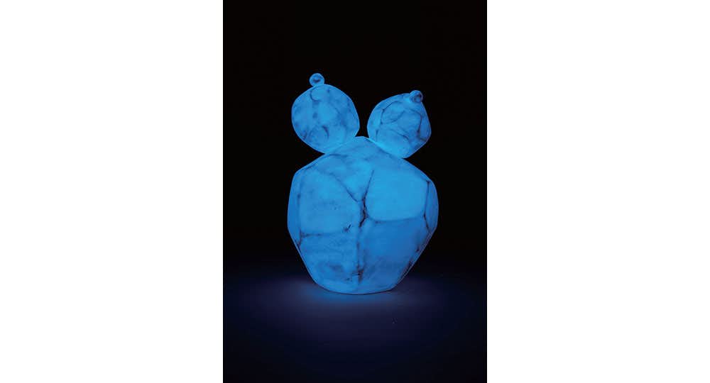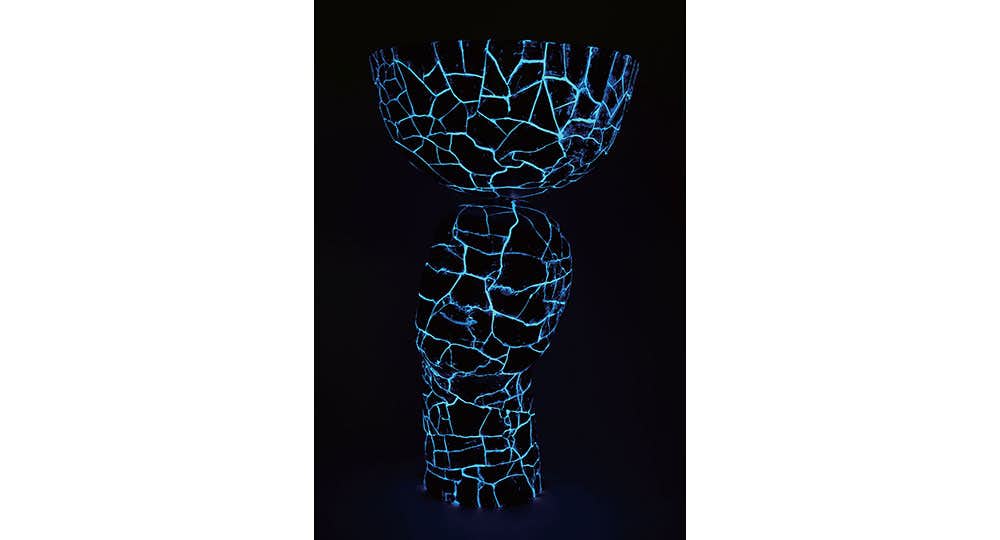本展では、「good night」シリーズを中心に展示。蓄光顔料を使用した同シリーズは、明るい場所で見た陶の滑らかなの表情からは想像もつかないほど暗闇で輝く、二面性のある神秘的な作品だ。また、ピース(破片)をつなぎ合わせてつくる唯一無二でストイックな技法により、焼き物ではあまり見ることのできない大きさを実現しており、見どころのひとつとなる。