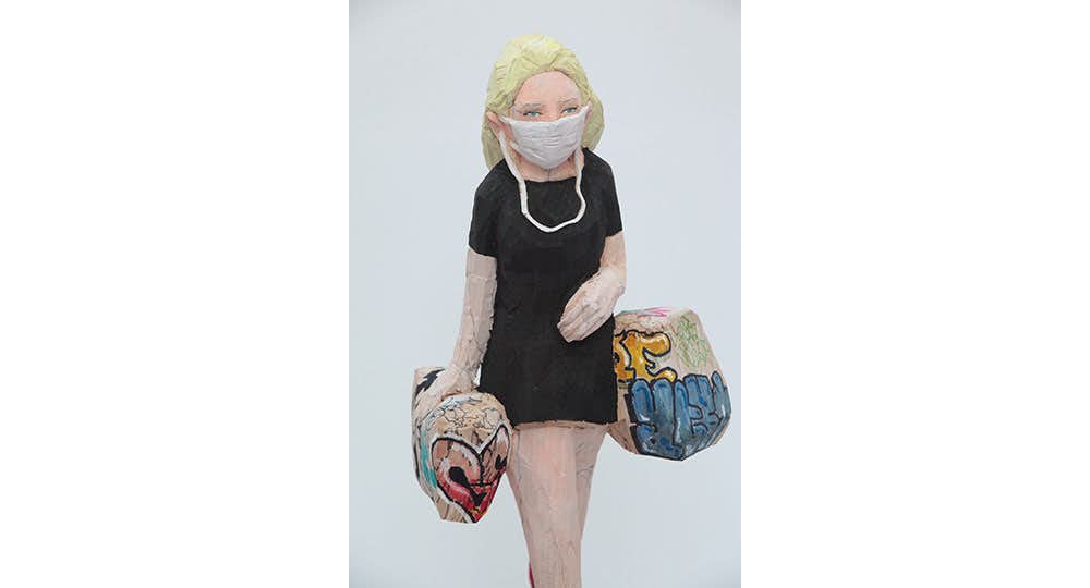 飯沼は、現代を生きる女性たちからインスピレーションを受けて制作を続けるアーティスト。最新のファッションに身を包み、したたかに現代を生きる女性たちの葛藤や強さ、そして美しさを、木彫作品で表現してきた。