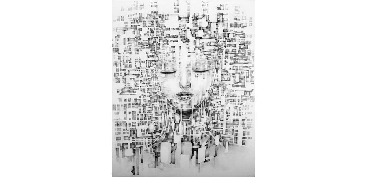 本展は、「10万年後の世界で、未来人がまとう衣」をテーマに描いたドローイングを中心とした新作の大型作品13点と、ペイントも含めた小作品約80点を展示する大型個展。液体や光でできた衣、意識のやりとりを促す衣、通信機能が備わった衣など、現実での再現が難しく、普段見慣れない造形を表現することで、遠い未来に想いを馳せ、未知の世界を探求する空間をつくりだす。
