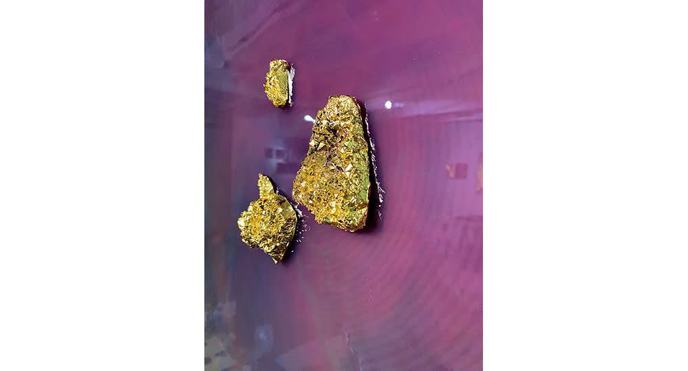本展では、絵画空間に神話のナラティブを巧みに導き入れた作品群を発表。ジュラ紀の石灰岩から発見された恐竜の化石が浮かび上がる《Crystal Matter》(2019)、古代の壁画を思わせる平面作品《Untitled》(2020)、天然鉱石が乱反射を引き起こすような、プラチナ箔の輝きで表層を覆われた《Untitled》(2020)など、絵画の背後に抽象世界や神話のエピソードを示唆しながら、マテリアルの集積がつくり出す絵画という現象の知覚的探求を、意味世界へと拡張する。