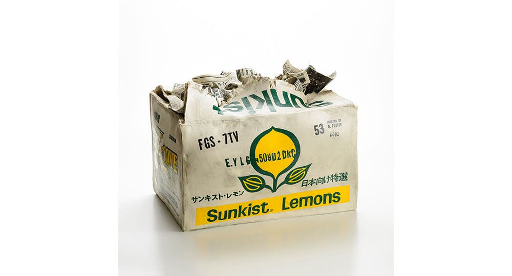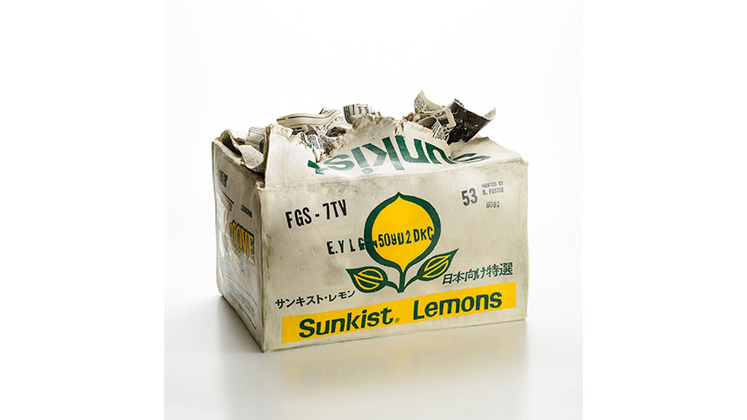 71年からは素材を⼟に移⾏し、新聞紙、広告ビラ、コミックブックなどをシルクスクリーンで⼟に転写した⽴体作品を制作。「氾濫する情報に埋没する恐怖」や「現代の消費社会から⽣み出されるゴミへの危惧感」を、割れる緊張感のある陶で表現することで、自身の表現の可能性を広げていった。