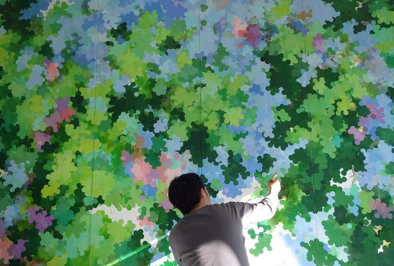 色の円の集合体からなる精緻な絵画を手がけてきたアーティスト、内海聖史の個展「dual」が開催される。