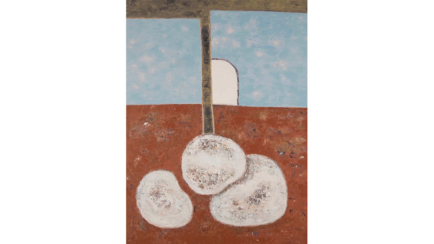そのなかで生み出される岩名の作品は、故郷の自然や村の信仰をモチーフとし、多くの場合は具象的な題材から出発してはいるものの、その抽象度は高く洗練されたものとなっている。