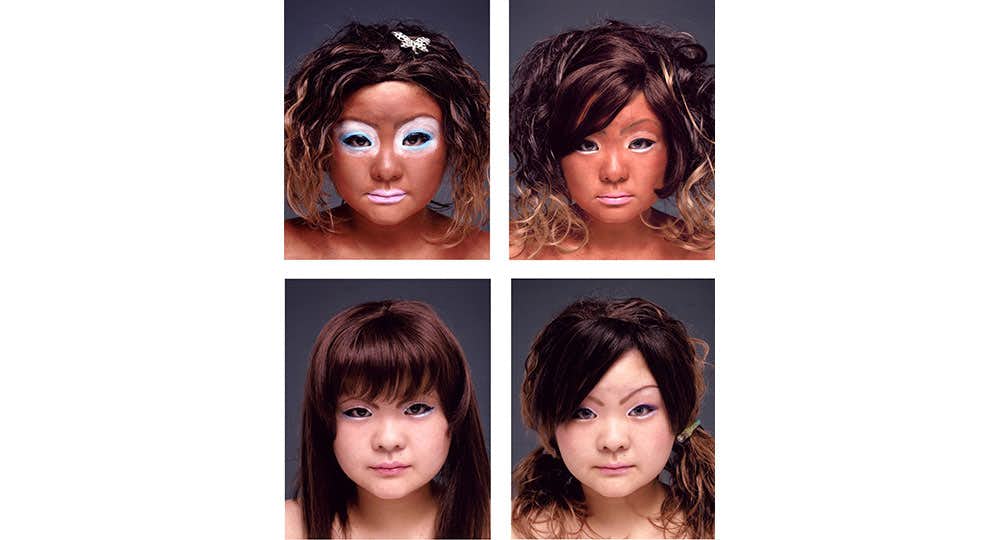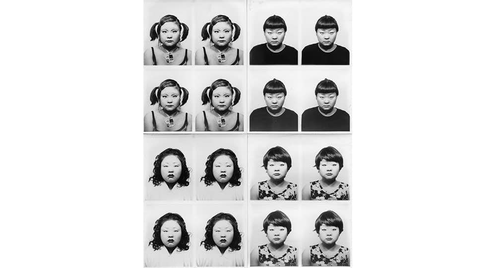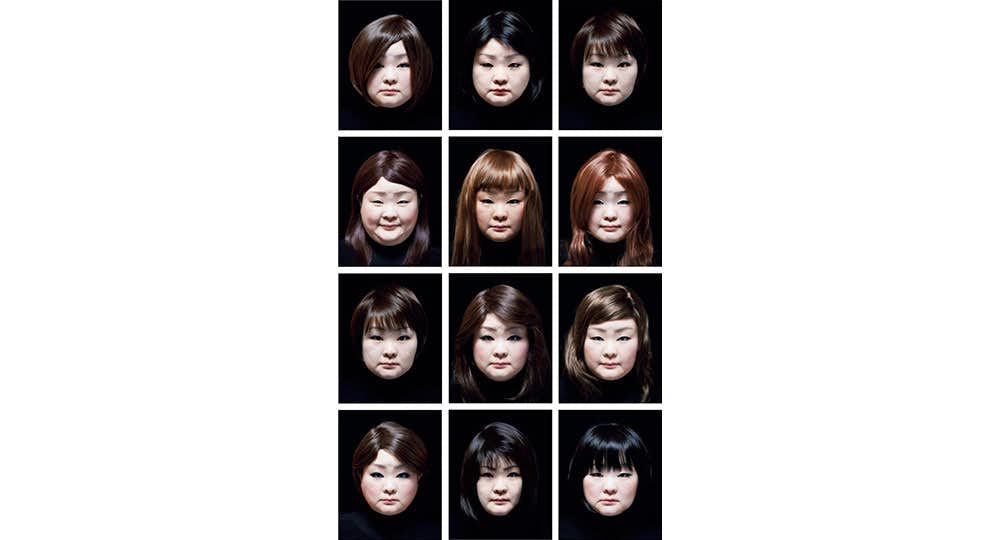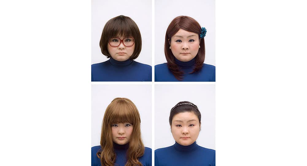 澤田の代表作《ID400》は大学の卒業制作として、「変わらないはずの内面と簡単に変わる外見」をコンセプトにつくられた作品。神戸市営地下鉄の沿線上にある立体駐車場で見つけた自動証明写真機を撮影場所に選び、400回変装して写真を撮り終えた後、自身で髪を剃ってノーメイク姿の《SKINHEAD》を撮影した。