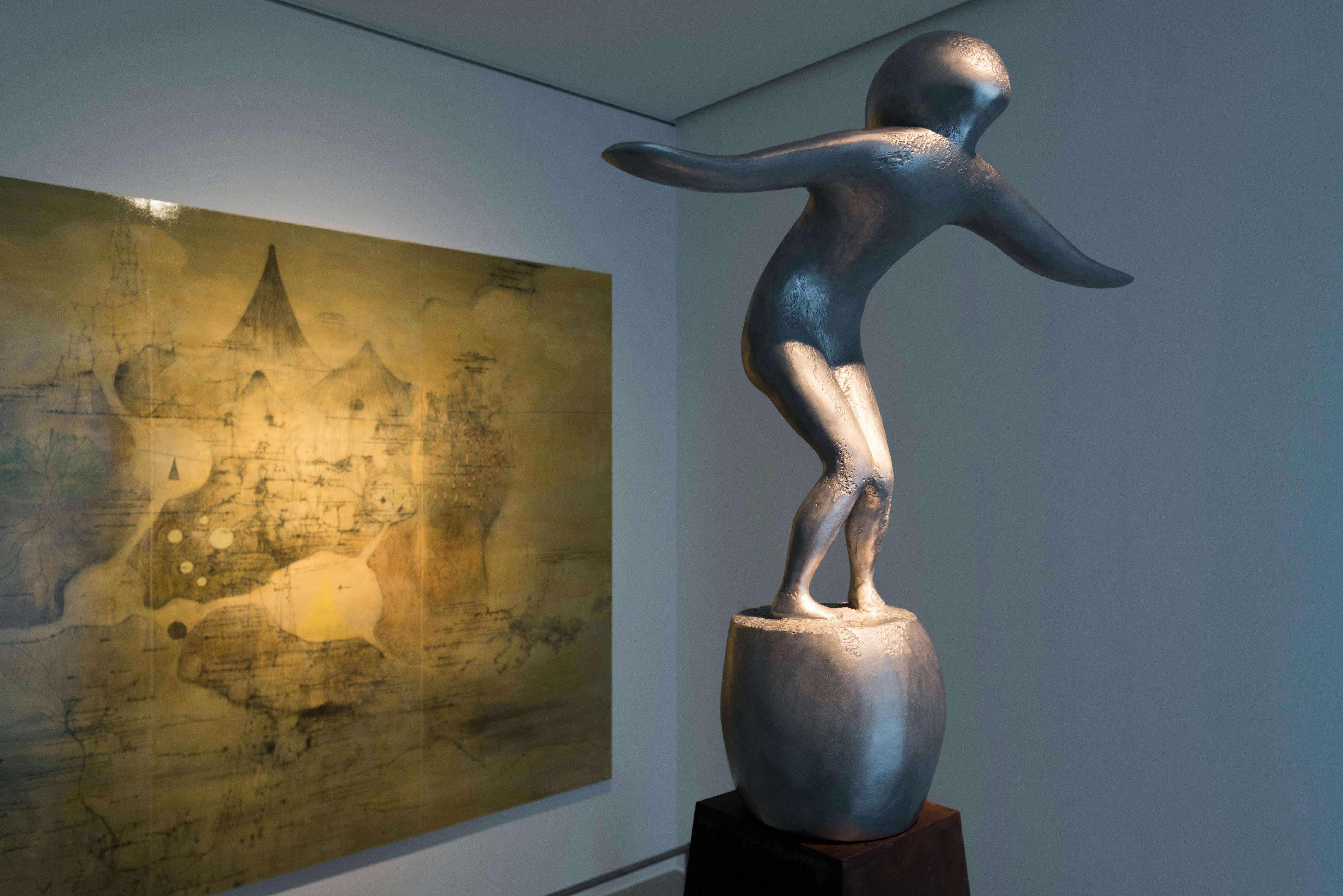 本展では、会場の美術館の常設作品で、空を見上げて初めて見つけられる2体の不思議な彫刻《フライングマン・アンド・ハンター》につながる最新作を公開。「間」や「関係」を考えさせる森北の作品を読み解き、楽しみながらその魅力を体感したい。