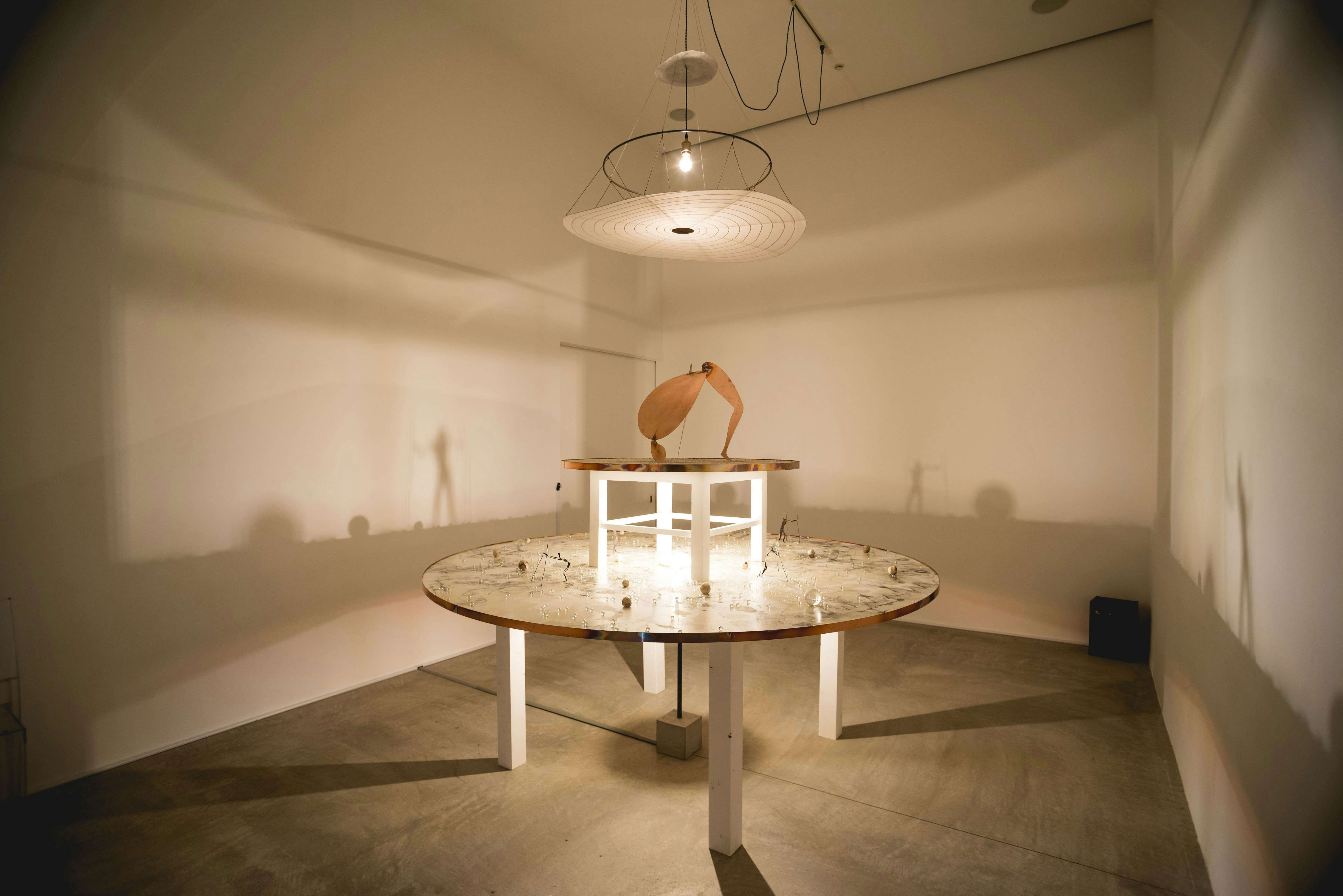 人や家、木がモチーフに取り入れられる森北の作品。環境と作品、建築と作品、人と作品、作品と作品といった様々な関係性が「間(ま)」に漂い、詩的なユーモアに包まれている。