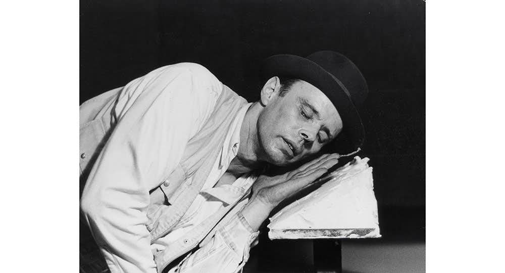 ヨーゼフ・ボイス(1921〜86)はドイツ・クレーフェルトに生まれ、第二次世界大戦以降のもっとも重要な芸術家のひとり。第二次世界大戦に通信兵として従軍し、ソ連国境付近を飛行中に追撃され瀕死の重傷を負うも現地のタタール人に脂肪を塗り込まれ、フェルトに包まれることで一命を取り留めた。この体験とそこで用いられた脂肪とフェルトがのちのボイスの制作における重要な「素材」となる。戦後は芸術家を志し、デュッセルドルフ芸術アカデミーで学んだ。