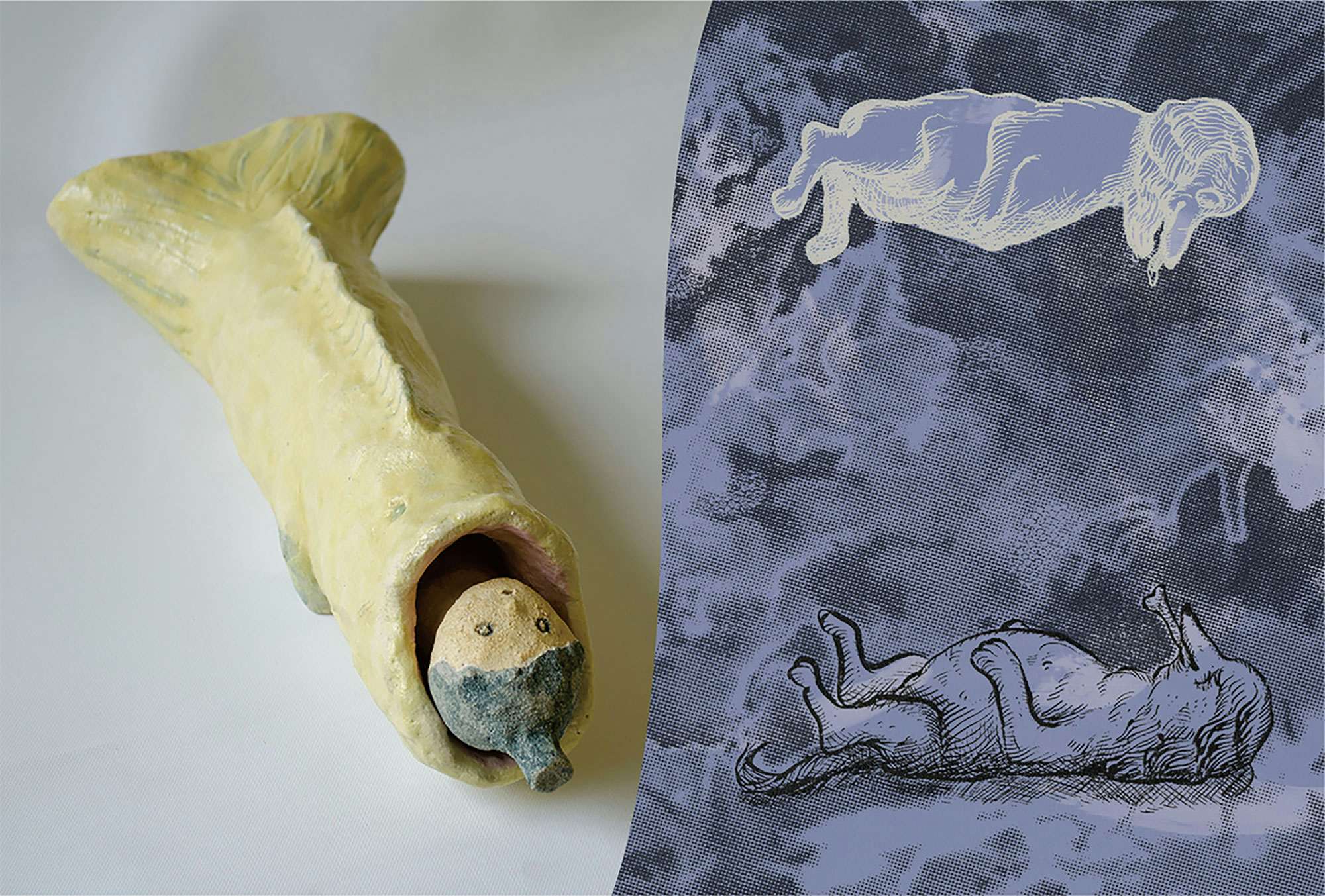 他方、津川は1991年広島県生まれ。2015年に尾道市立大学大学院美術研究科絵画(油画)研究分野を修了。津川の制作は要であるドローイングから始まり、紙に鉛筆を使いひたすら描き/消すという触覚的な行為によって、意図していなかった脈略のない絵が浮かび上がると言う。また並行して制作を続けている陶芸作品においても、ドローイングから浮かび上がったイメージから派生したり、手で掴む触覚的な感覚を膨らませたりすることで形成している。