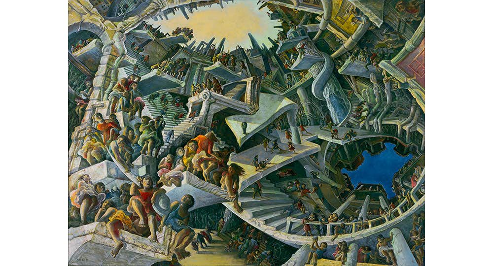 作家にとって九州での初めての個展となる本展では、新作・近作も含め、巨大画を中心とした油彩画約40点と挿絵などを展示。人間の存在をテーマに、壮大な世界観に満ちた現代の叙事詩を謳い上げる。