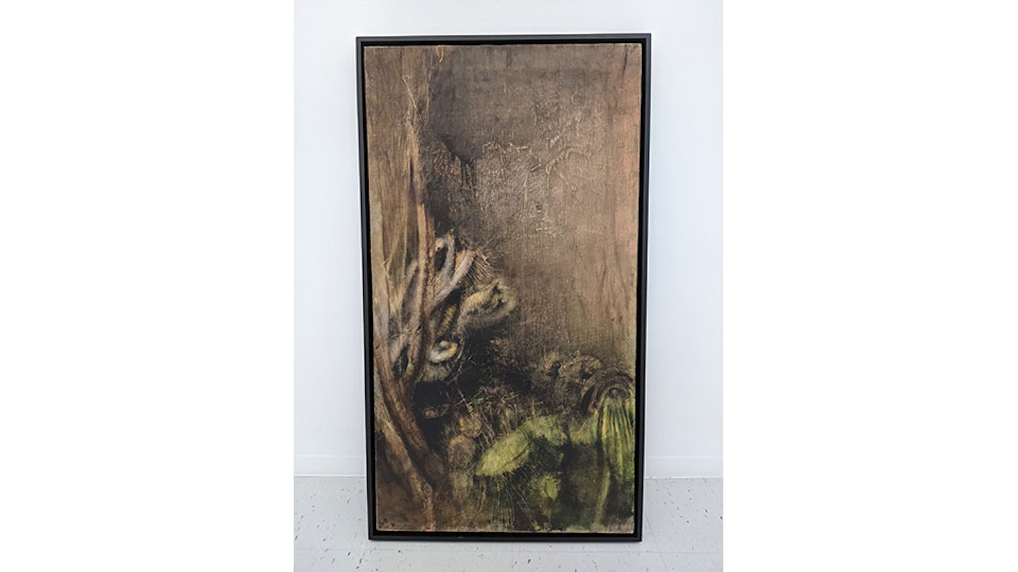 平野は1927年大分県生まれ。ほぼ独学で絵を習得し、福岡県北九州市を拠点に活動。一貫して自己の内面を見つめ続け、最初期の具象画から、抽象表現へ、そして晩年にはデフォルメした人物像を描いた。