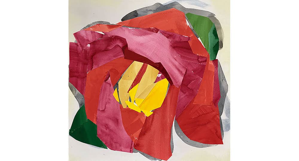 本展では、ヤブツバキをモチーフに描いた新作の切り紙絵のシリーズを展示。田窪は「琴平山再生計画」で訪れた、温暖な気候となだらかな稜線の小島が浮かぶ瀬戸内海ならではの穏やかな風土と、それに呼応するようなヤブツバキの凛とした佇まいから、この土地の性格を読み取り、「まさに有るが如き花」だと感じ、とても大切な素材になったと言う。