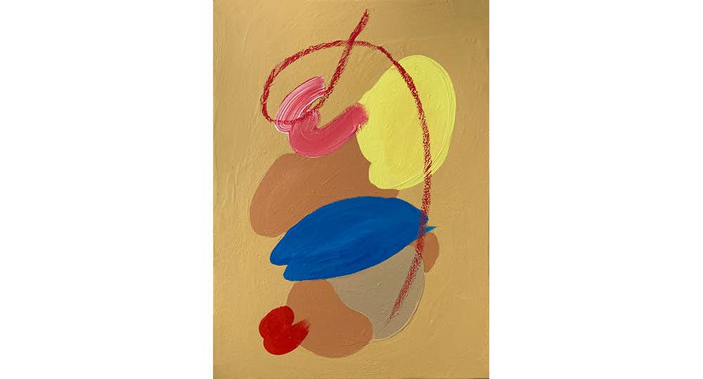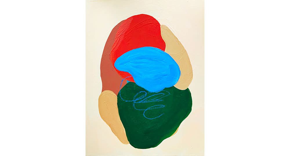 山瀬は、アクリルペイントを用いた抽象画やソフトスカルプチャーを制作。作品に頻繁に登場するカラフルで不思議な物体は、生き物(人間)を代弁し、人間として生きることで生まれる身体と感情の矛盾を表している。変化し続ける細胞は身体をつねに動かし、目に見えない感情も流動的で私ちをつねに振り回す。その両方は、同じ容器(身体)の中に収納され生きている。山瀬は、その目に見える容器ではなく、その容器の中にある姿を持たない「生」を新たなかたち(生物)として生み出している。