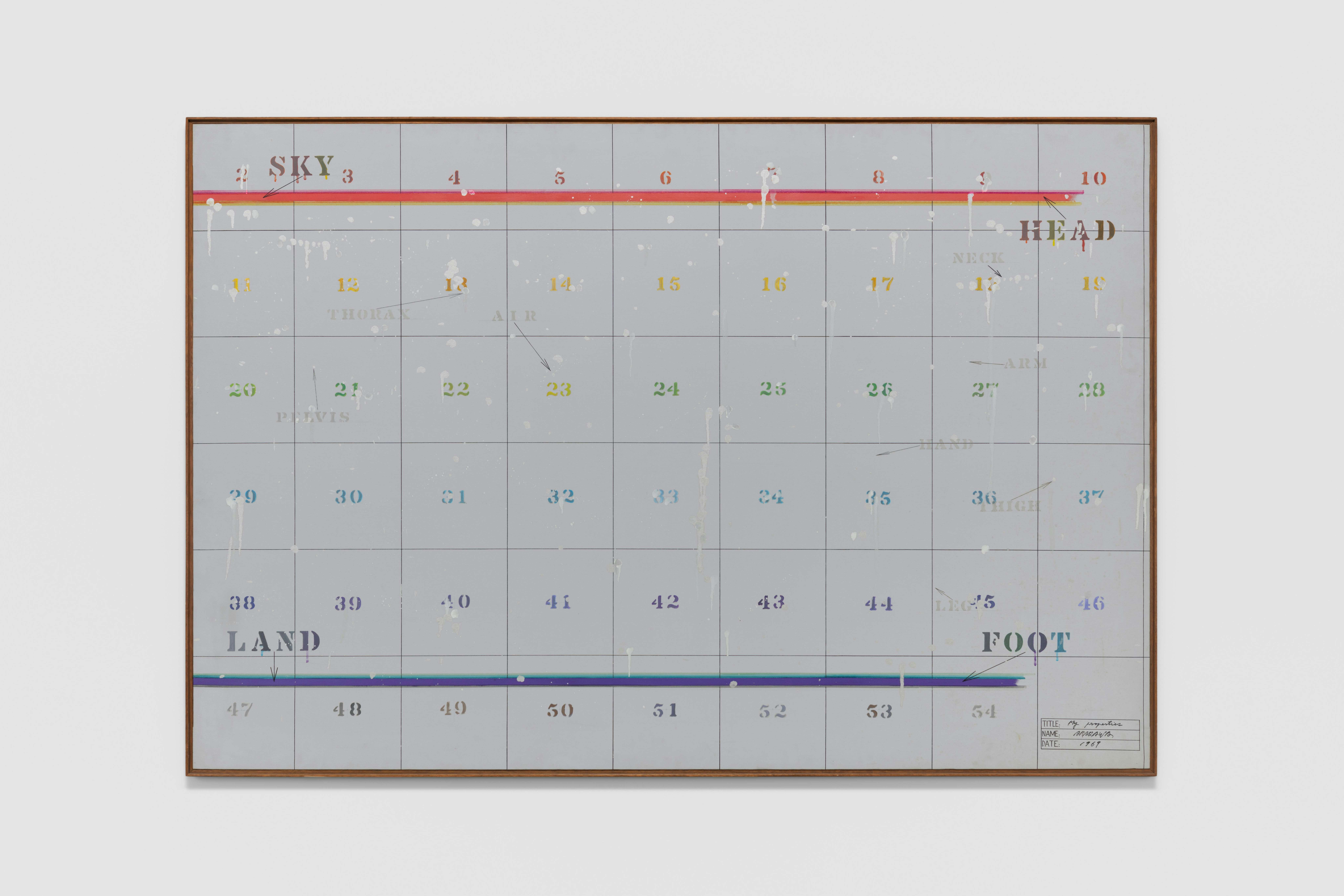 キャンバスやスクリーンに飛び交う記号論的なアイデアの数々によって、新たな理解の手段を得ようとした荒川。本展はアーティストの若き日の試みを知る好機となる。