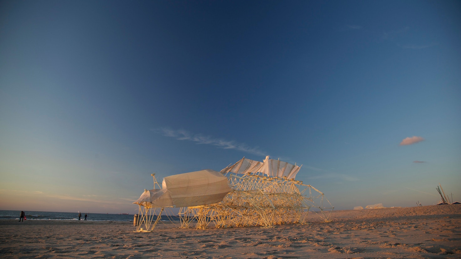 ヤンセンは1948年、オランダのスフェベニンゲン出身。デルフト工科大学で物理学を専攻し、 75年に画家に転向。90年に風力で動く「ストランドビースト(砂浜の生命体)」の制作を開始して以降、世界各地で公開してきた。