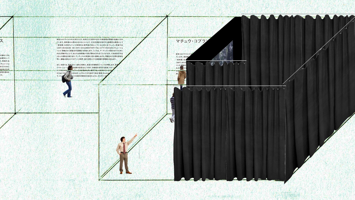 そしてフィリップ・デクローザの絵画で始まるもうひとつの空間では、ドキュメンタリー映像作品《The Anti-Museum: An Anti-Documentary》を公開。これはアーティストが芸術行為、あるいは自らの決断において展示を閉鎖した歴史とその意味を問い、アートや展示空間における制度の限界や議論を再構築する試みであり、鑑賞者はコプランの「閉鎖された展覧会の回顧展」を再訪することとなる。