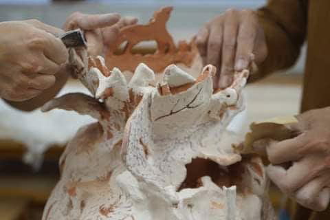 本展では、すべての作品を共同で制作し、新たな試みとなる大作2点を含めたキャンバス作品とドローイング、セラミック作品を展示。粘土の作品は淺井にとって原点回帰とも言え、高山は作品としての発表は今回が初めてとなる。