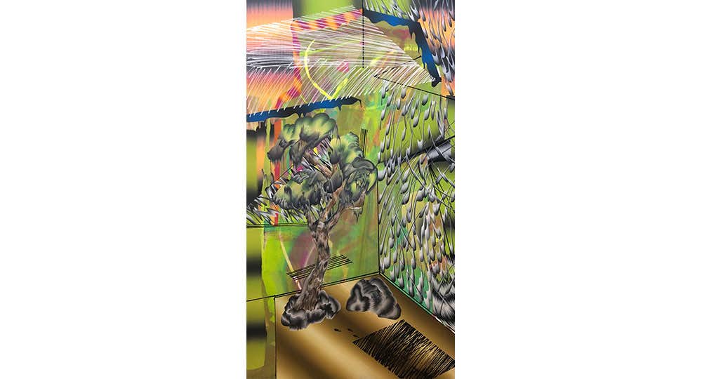 浦川大志は1994年福岡県生まれ。現在も出身地を拠点に活動。スマートフォンを通して取得した情報や身体感覚をもとに、デジタル的な筆致を特徴とする絵画作品を制作している。その制作方法は、画像検索やSNSを使って集めた画像やイラストを、自身が撮影した写真と組み合わせて「風景画」として構築するというものであり、出品作の新作も同様の方法でつくられている。