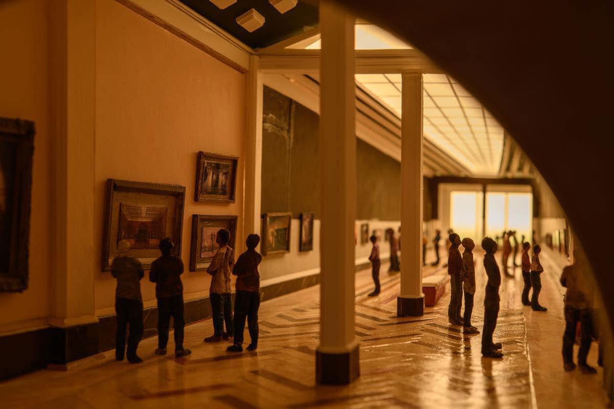 本展では、新作を中心に約10点の立体作品を発表。ギャラリー空間で作品を覗く鑑賞者たちは、杉山の美術館に登場する人形たちと重なり、マトリョーシカのように入れ子状態となった空間には、それがあたかも無限に続くかのような非現実的な感覚が生み出される。