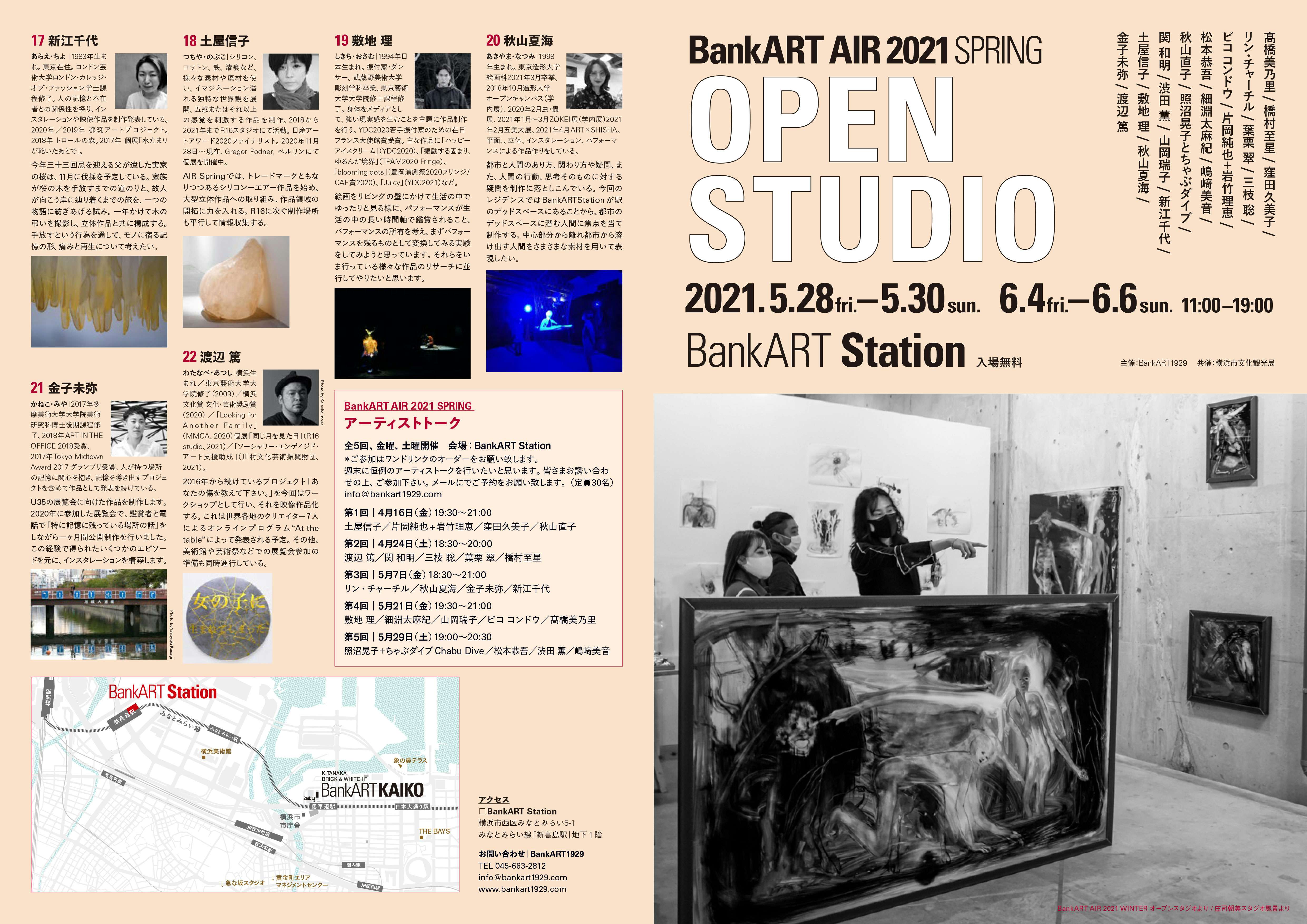 BankART Stationでは現在、アーティスト22組が4月1日から約2ヶ月間、制作活動を行っている。オープンスタジオの期間中は、それぞれの制作場所(スタジオ)を公開し、4~5月に制作された成果物も展示する。