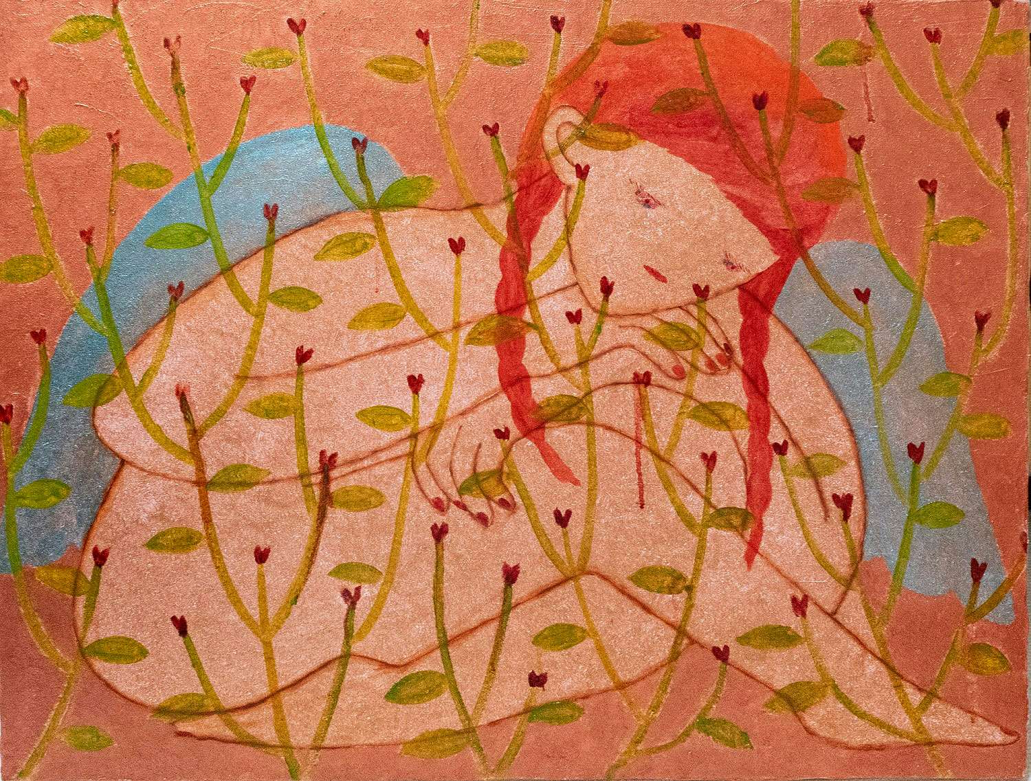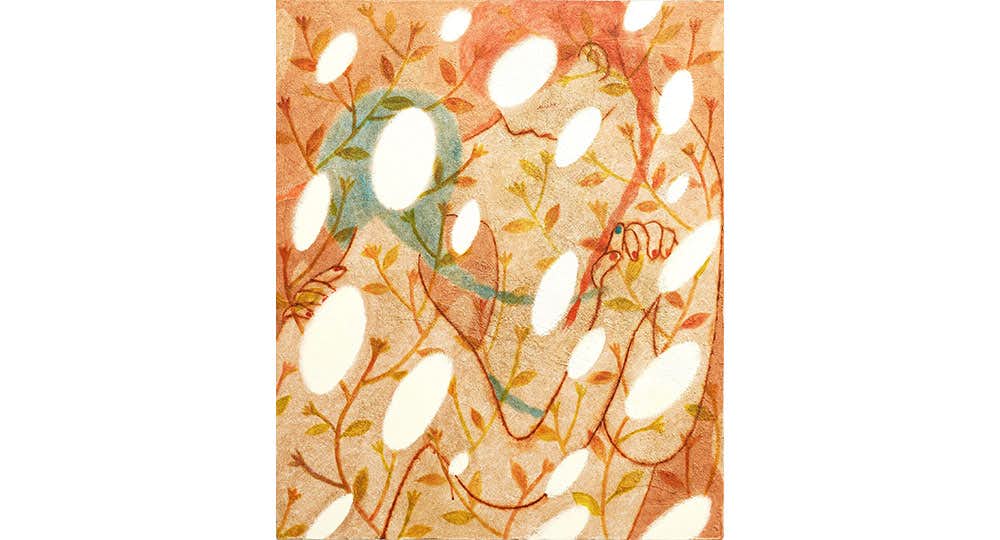 やましたの作品では、⼈間の健気さ、哀しさ、愛おしさ、素朴さや美しさが私的な寓話として表現され、作家はそれらによって私たち鑑賞者の感性が解き放たれることを期待する。「邪魔のない幸せを描きたい」と言い、活動初期より⼀貫して自身の内省的な物語をドローイングの⼿法を交えたペインティングによって描き、私たちの感情の複雑な動きについて探究し続けている。