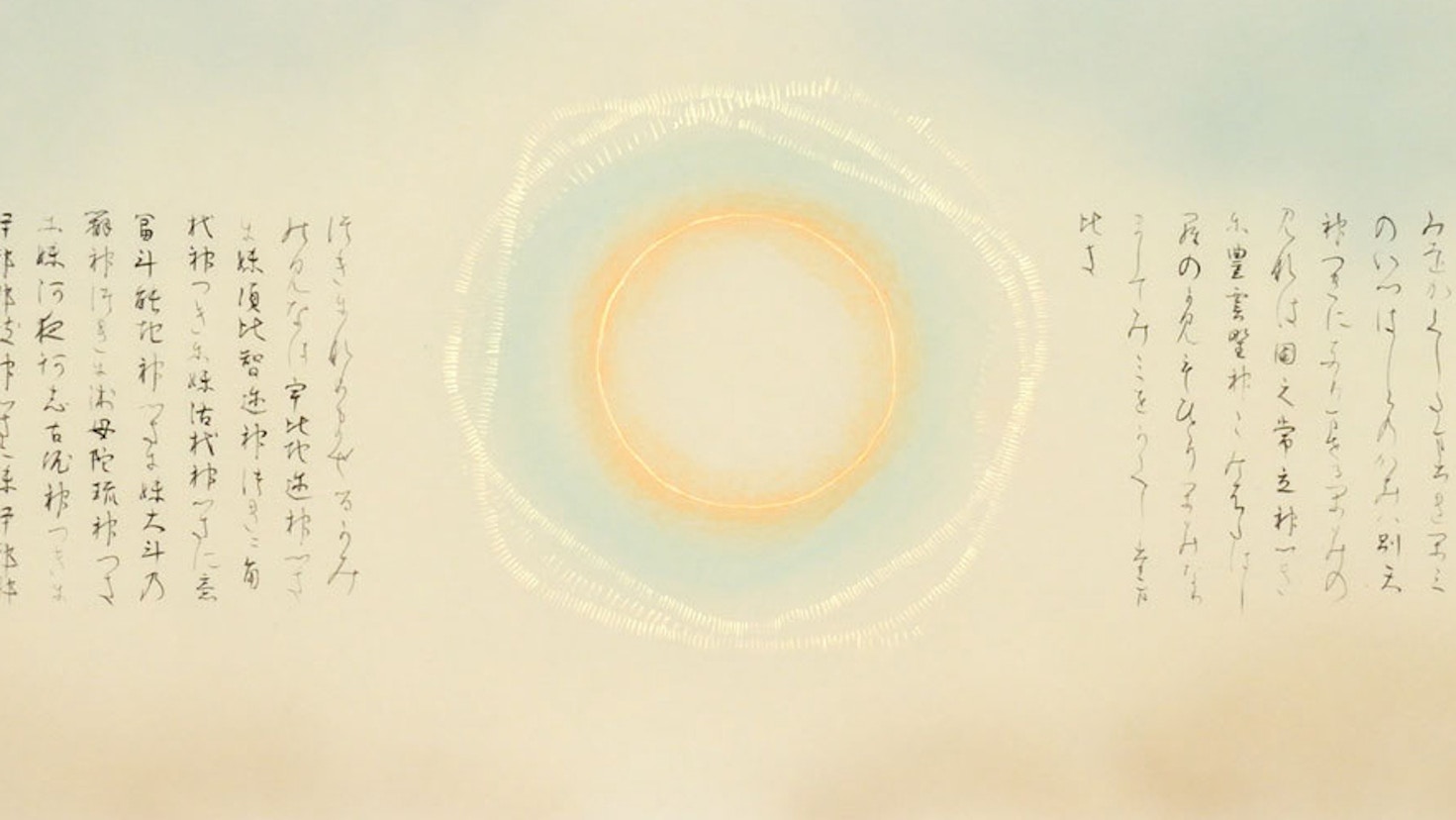 古事記のテキストを写経のように自らの筆で書き写す行為を反復する。古代と現代をつなぐ複雑な意識層の探求的行為は、森の今作にも続いており、それは作家が語る「身体にある古代人の遺伝子は、わたしの中に深く眠る特別な意識を呼び覚まそうと、反応しているのです」という感覚を発端とする。