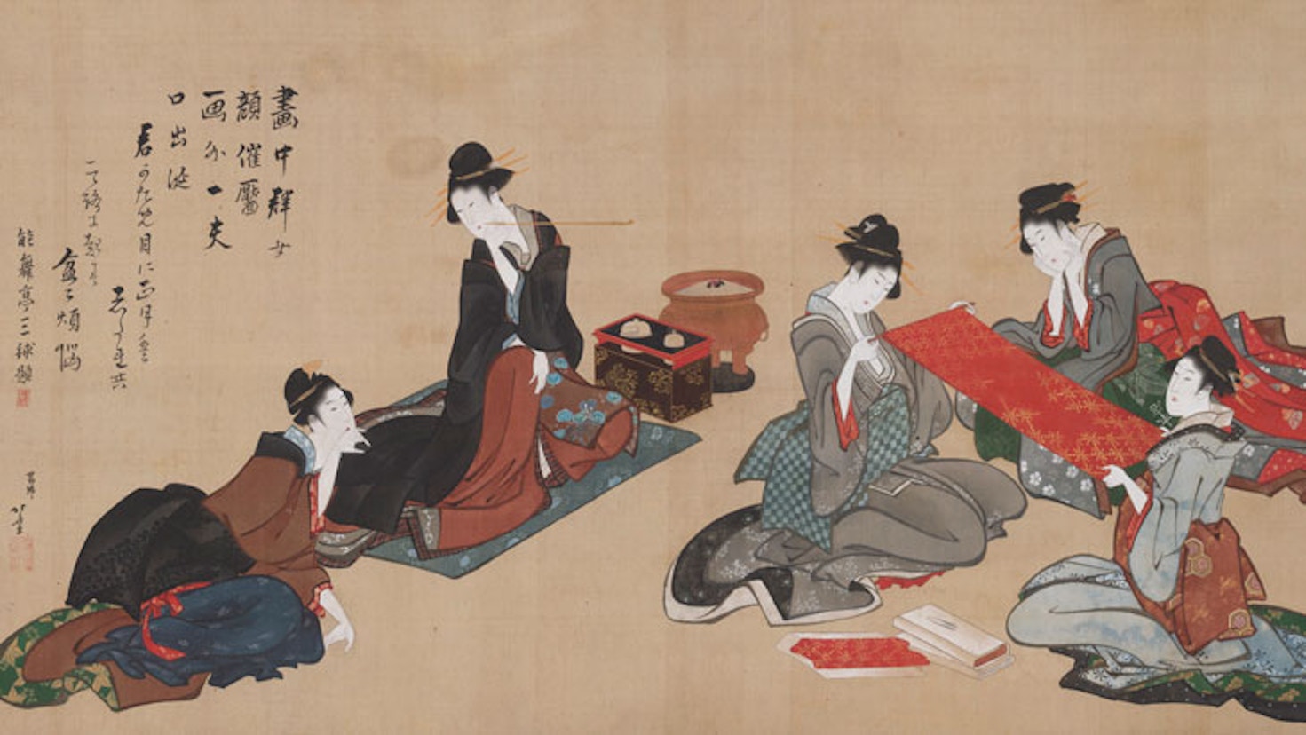 本展「細見コレクション 集う人々-描かれた江戸のおしゃれ-」では、同館のコレクションのなかから、時代の先端をいく人々の美意識、往時の個性豊かなファッションが描かれた江戸時代の絵画作品や調度品を紹介する。