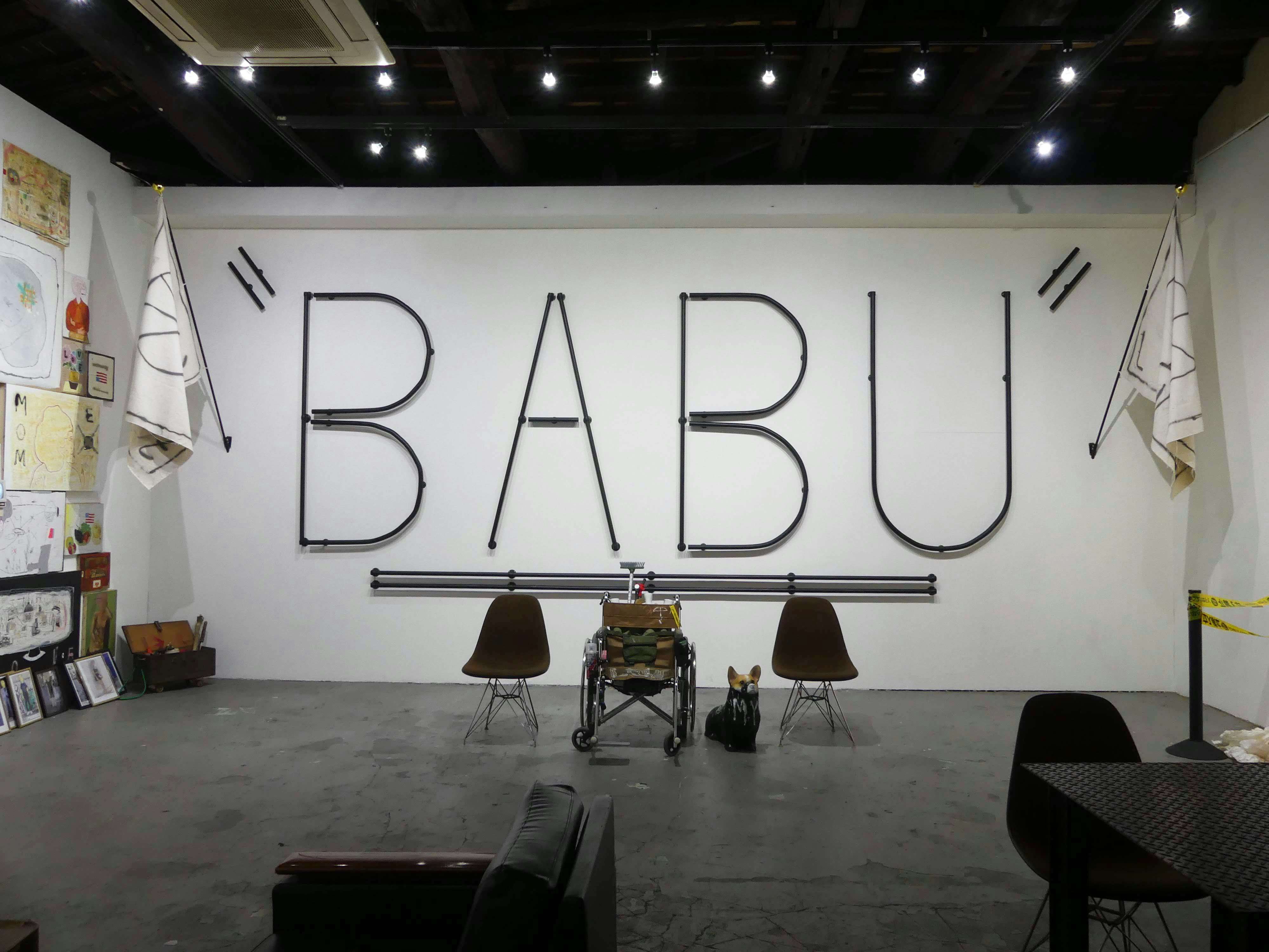 BABUは北九州に生まれ育ち、ストリートアーティスト、スケートボーダー、現代美術家として活動。国内外各地に赴いて多数のストリートアートを手がけるいっぽう、ストリートカルチャーをベースにした映像、絵画、ドローイング、彫刻作品、タトゥーなど、肩書きにとらわれず様々なスタイルの作品を発表してきた。スケートボード、廃材、ゴミ、捨てられた絵画などをコラージュした作品や、映像作品は、旅を通じて磨がれた作家独自の感性で制作されている。
