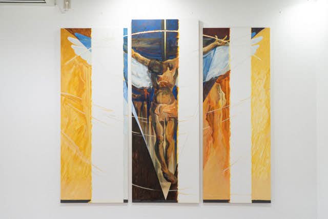 本展では、磔刑図や人体の意味について、また絵を描く衝動や役割についても考えながら、《ta・KK・ei》を新たに解釈し直す。