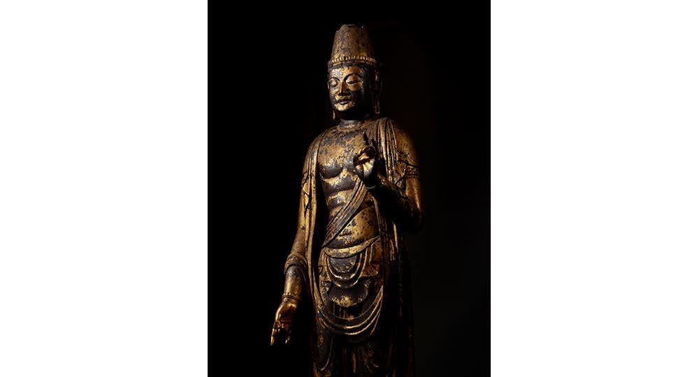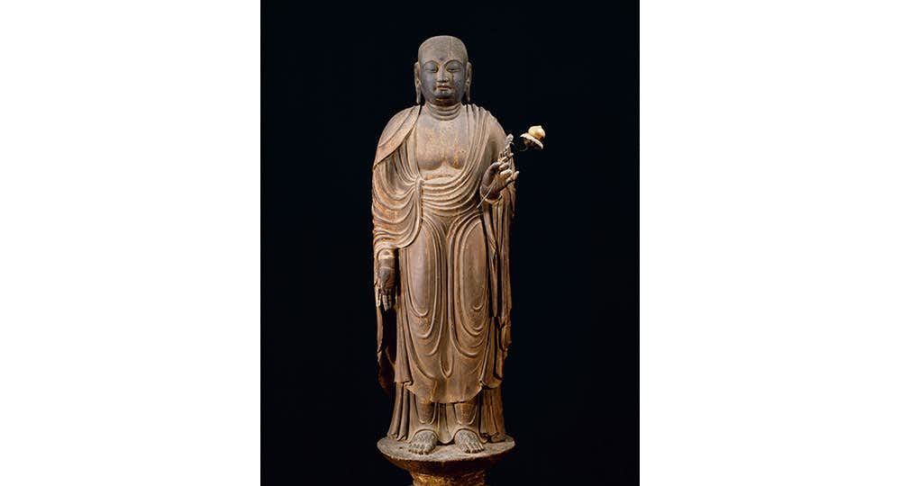 奈良時代に造像された数少ない天平彫刻のなかでも名品と称される、《十一面観音菩薩立像》の奈良県外での公開は本展が初めて。また会場では、禁足地との結界として設けられた大神神社の三ツ鳥居を再現し、三輪山信仰にも迫る。