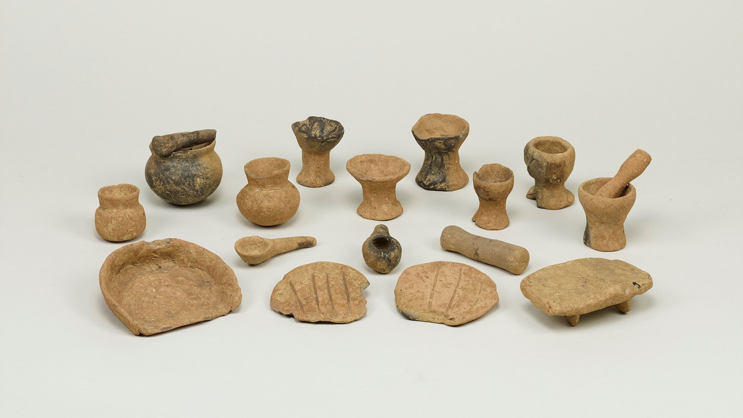 『古事記』の神話によれば、三輪山には人々が入ることができない禁足地があり、そこから古代の祭祀を物語る子持勾玉や、造酒に用いる器具の小さな土製模型が出土しており、古くからの信仰の存在をいまに伝える。