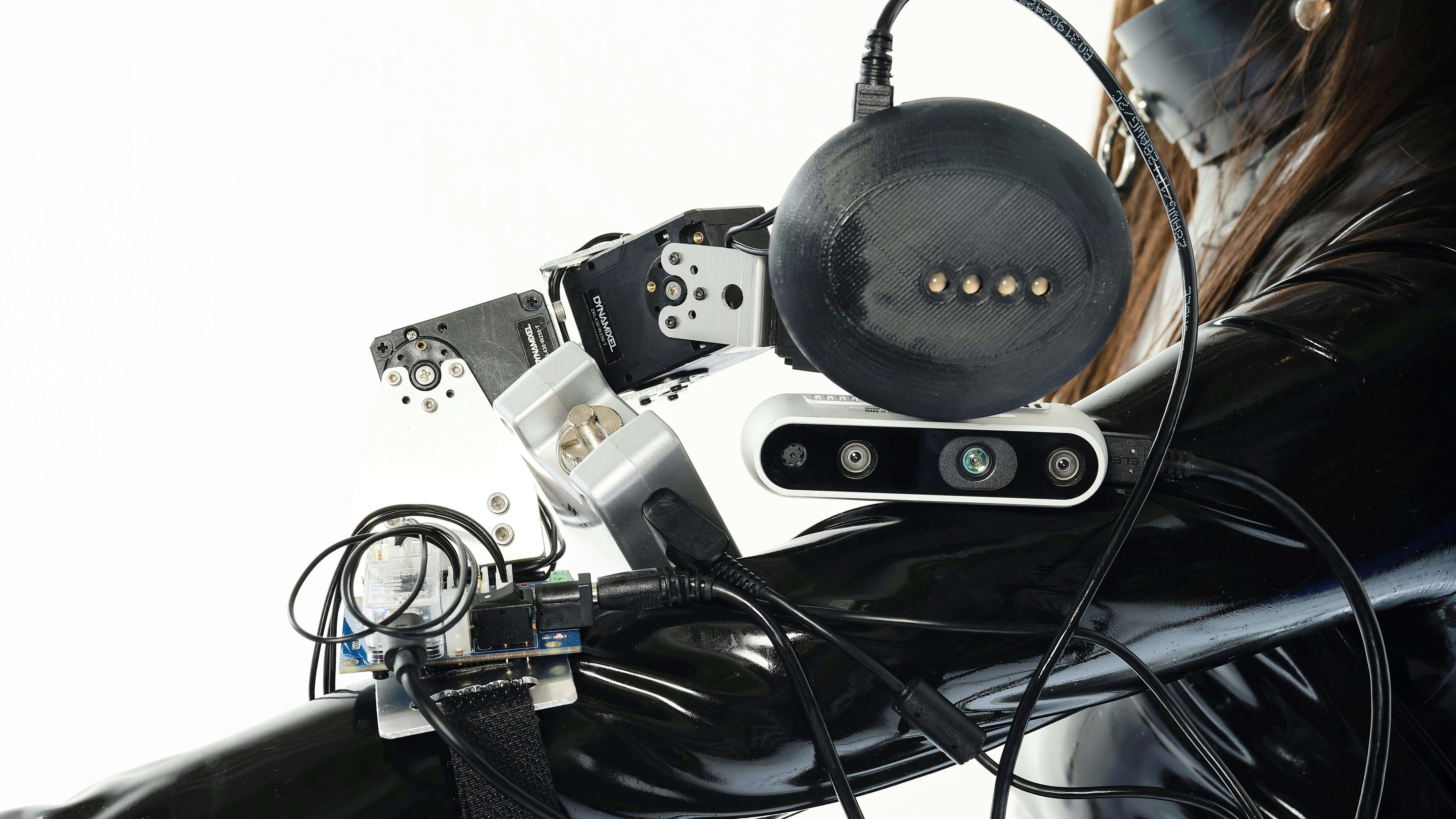 会期中には、きゅんくんが制作する研究用途のウェアラブルロボット「Fylgear(フィルギア)」の被験者実験も実施。RGB-Dカメラ、スピーカーなどを搭載し、装着者とコミュニケーション可能な「Fylgear」(北欧神話の霊的存在「fylgja」と、メカニカルな装備という意味での「gear」に由来)は、人に追随するメカニカルな装備という意味合いを持つ(被験者実験の日程・詳細は予約サイトまで)。