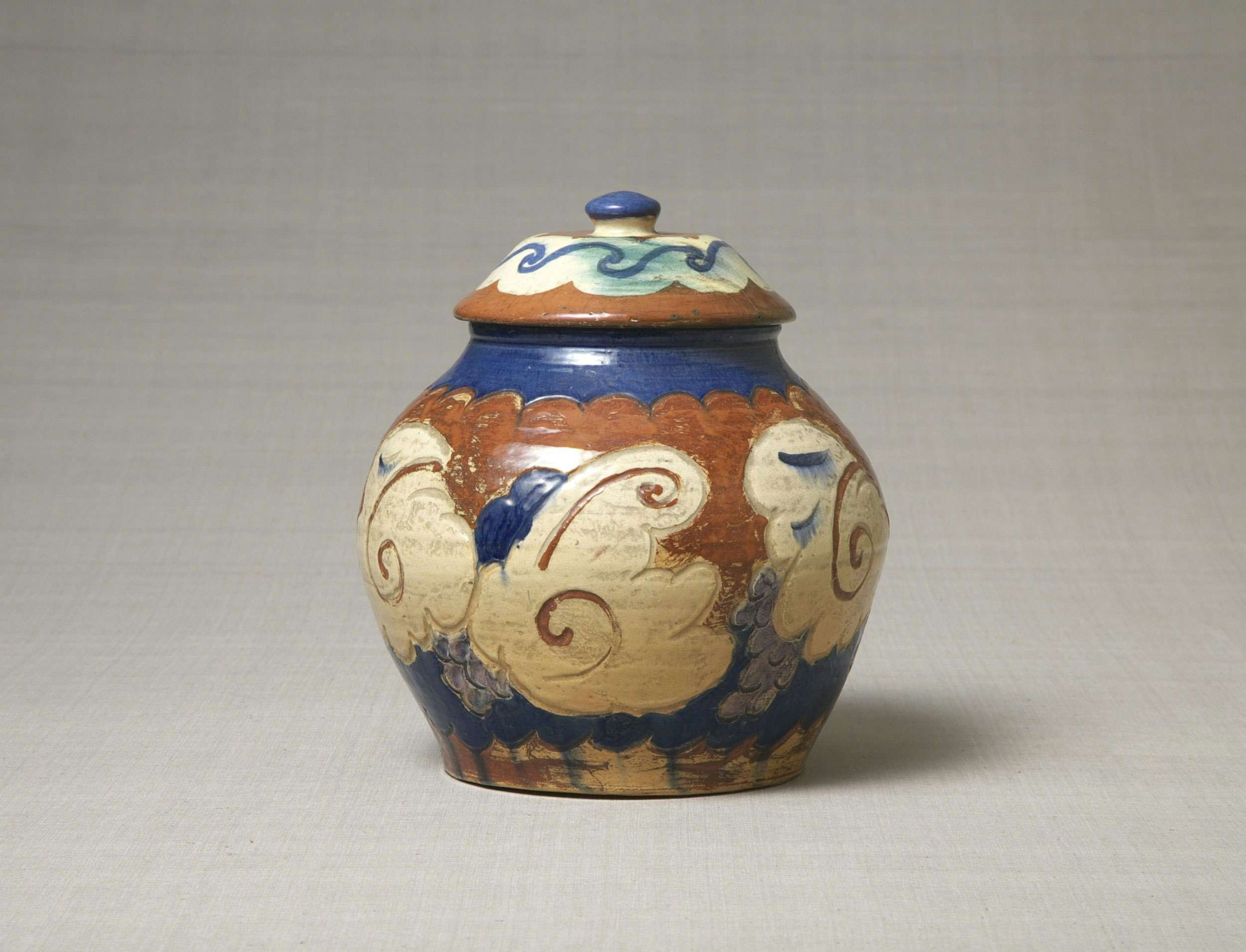 本館1階では、5人それぞれの作風を確立させた戦後の作品に注目。さらには濱田・富本・芹沢・黒田に続き、重要無形文化財保持者(人間国宝)に認定された金城次郎(琉球陶器)、島岡達三(縄文象嵌)ら、のちの時代を引き継いだ作家たちの作品も合わせて紹介する。