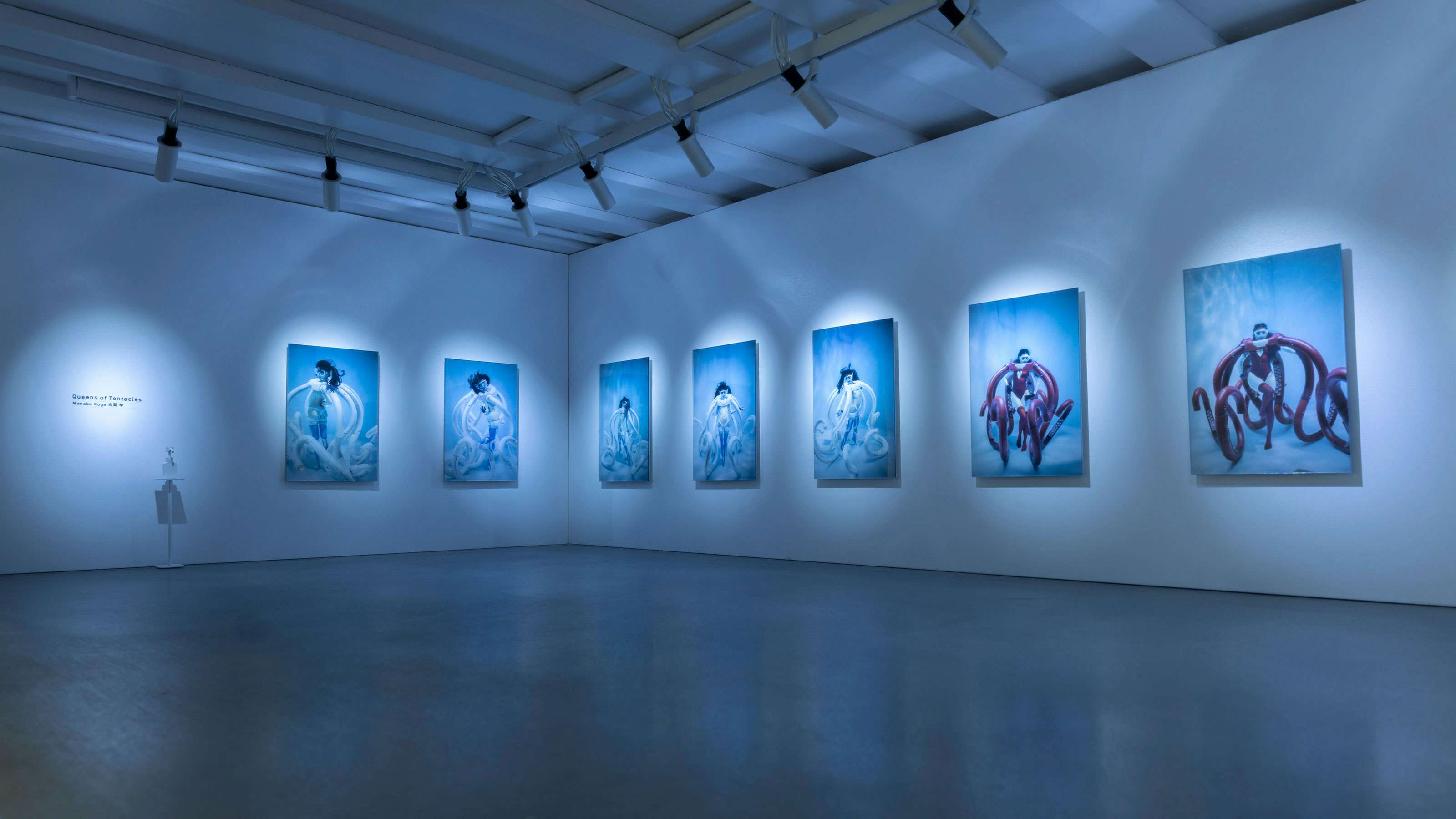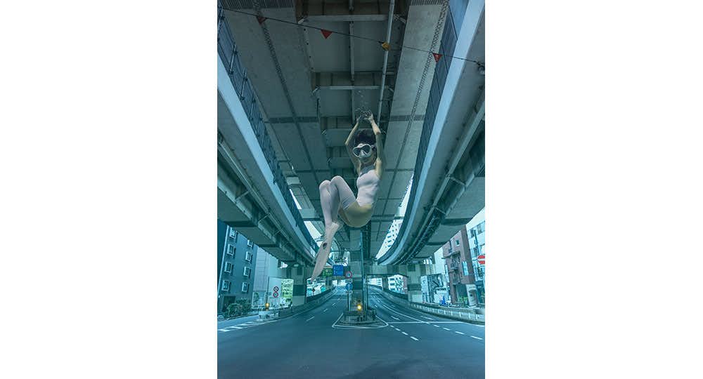 古賀は、水中撮影の作品などで知られるアーティスト。被写体と一緒にダイビングをして、その瞬間をキャプチャーしながら、複数の時間軸や異なる空間、縮尺でとらえた瞬間を再構築した作品を制作している。